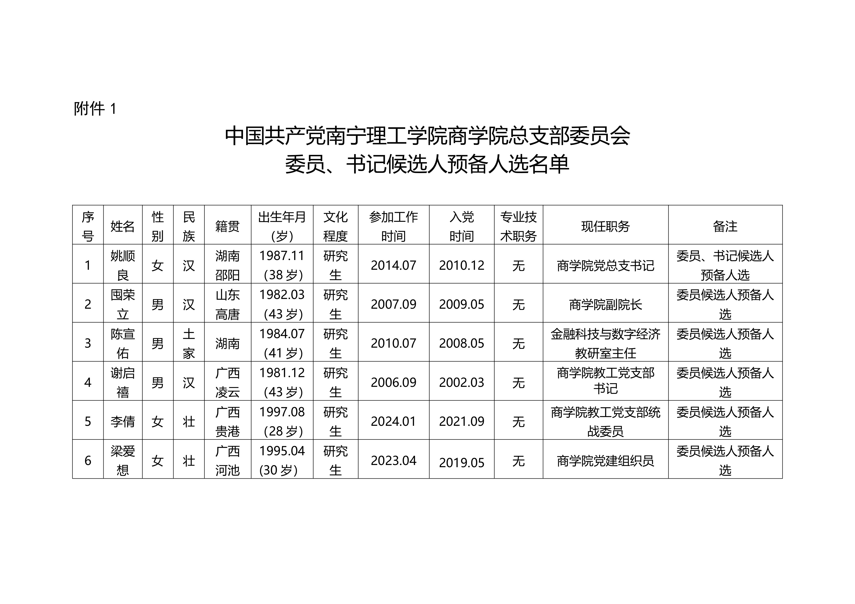 附:1.中共南宁理工学院商学院总支部委员会委员、书记候选人预备人选名单