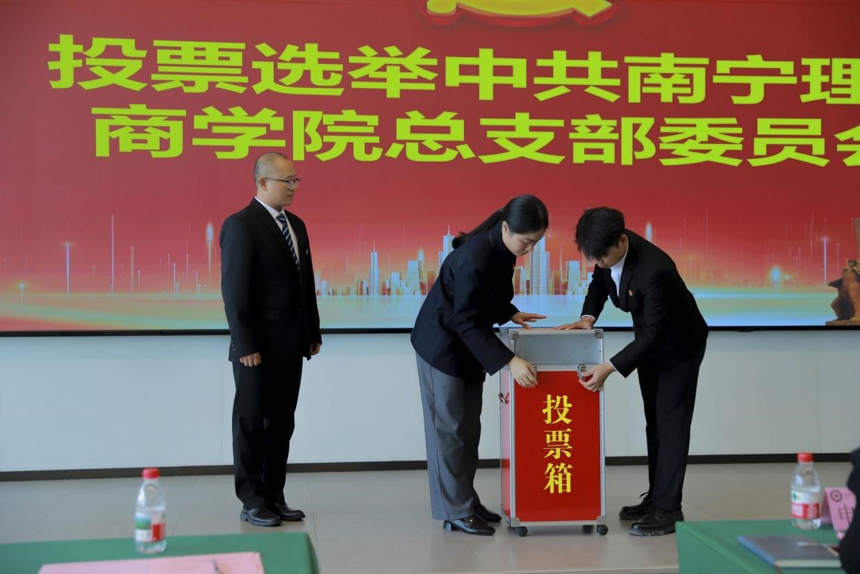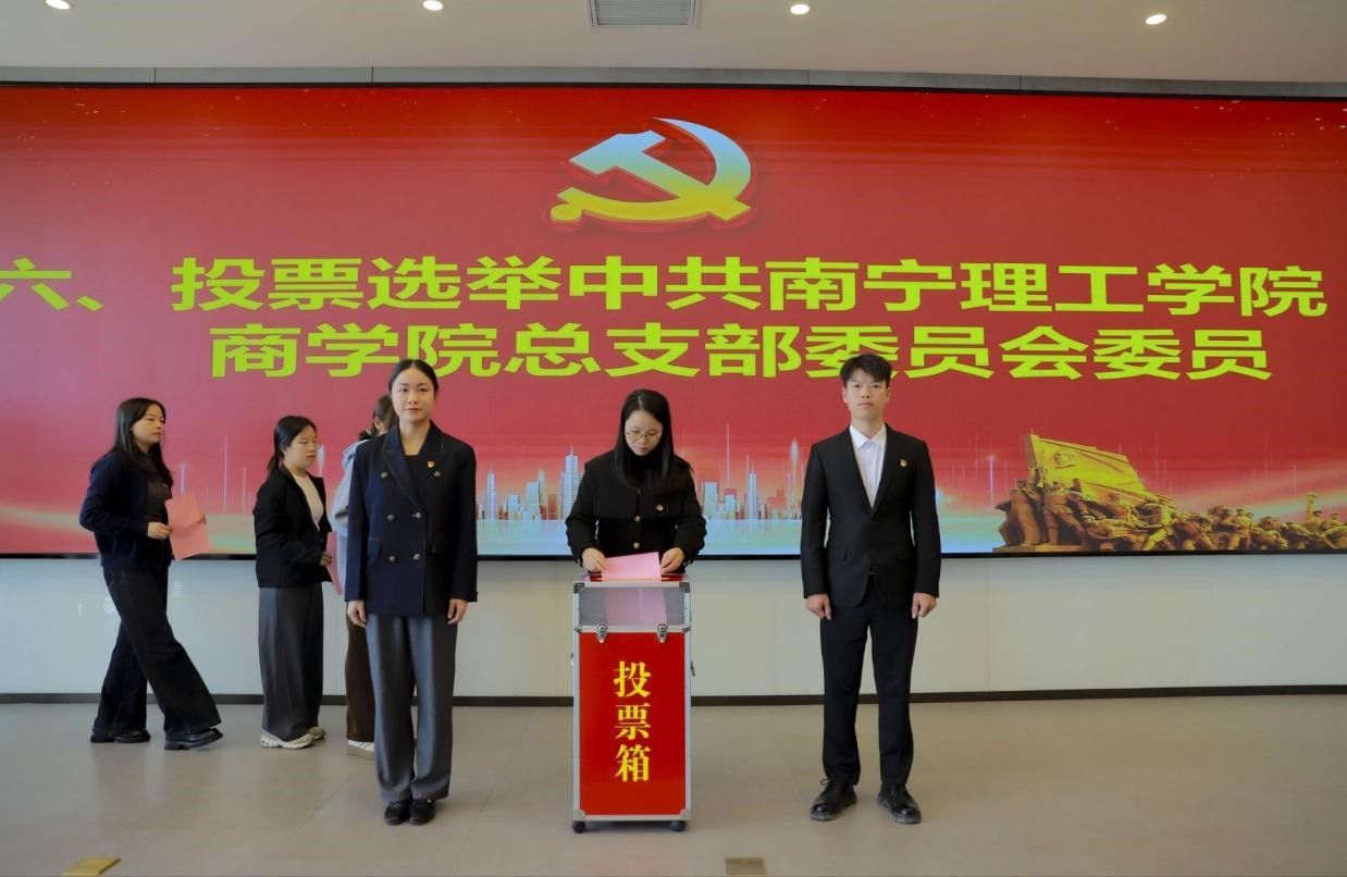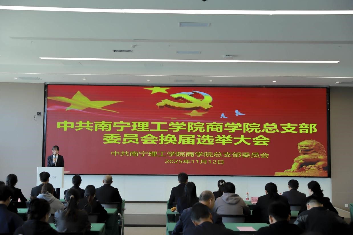 为进一步加强党的基层组织建设,全面增强党总支的凝聚力和战斗力,根据《中国共产党章程》《中国共产党基层组织选举工作条例》等相关要求,2025年11月12日,中共南宁理工学院商学院总支部委员会换届选举大会在图书馆618顺利召开,大会由商学院穆飞印同志主持,学校党委组织部部长蓝渝宗和商学院全体党员到场参会。