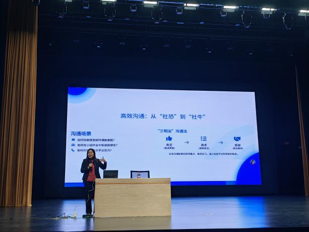 整场讲座,何建红教授引经据典、深入浅出,语言生动且富有感染力,现场掌声阵阵。她勉励在场新生,要珍惜大学四年的宝贵时光,做到“多学、多思、多积累”,勇于探索,不断突破自我,为创造个人学业与未来职业生涯的崭新辉煌打下坚实基础。