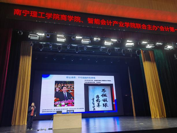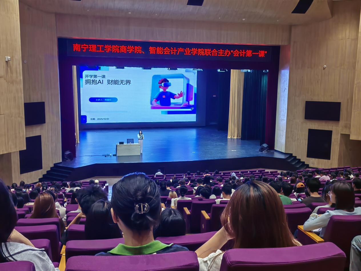 2025年10月29日,南宁理工学院商学院与智能会计产业学院成功举办了面向2025级新生的“会计第一课”大型专题讲座。本次活动旨在引导会计学与财务管理专业约750名大一新生树立正确的专业价值观,科学规划未来学业与职业发展,主题聚焦于“立德树人、规划未来”,深入探讨新时代财会人才的思政素养与职业路径。