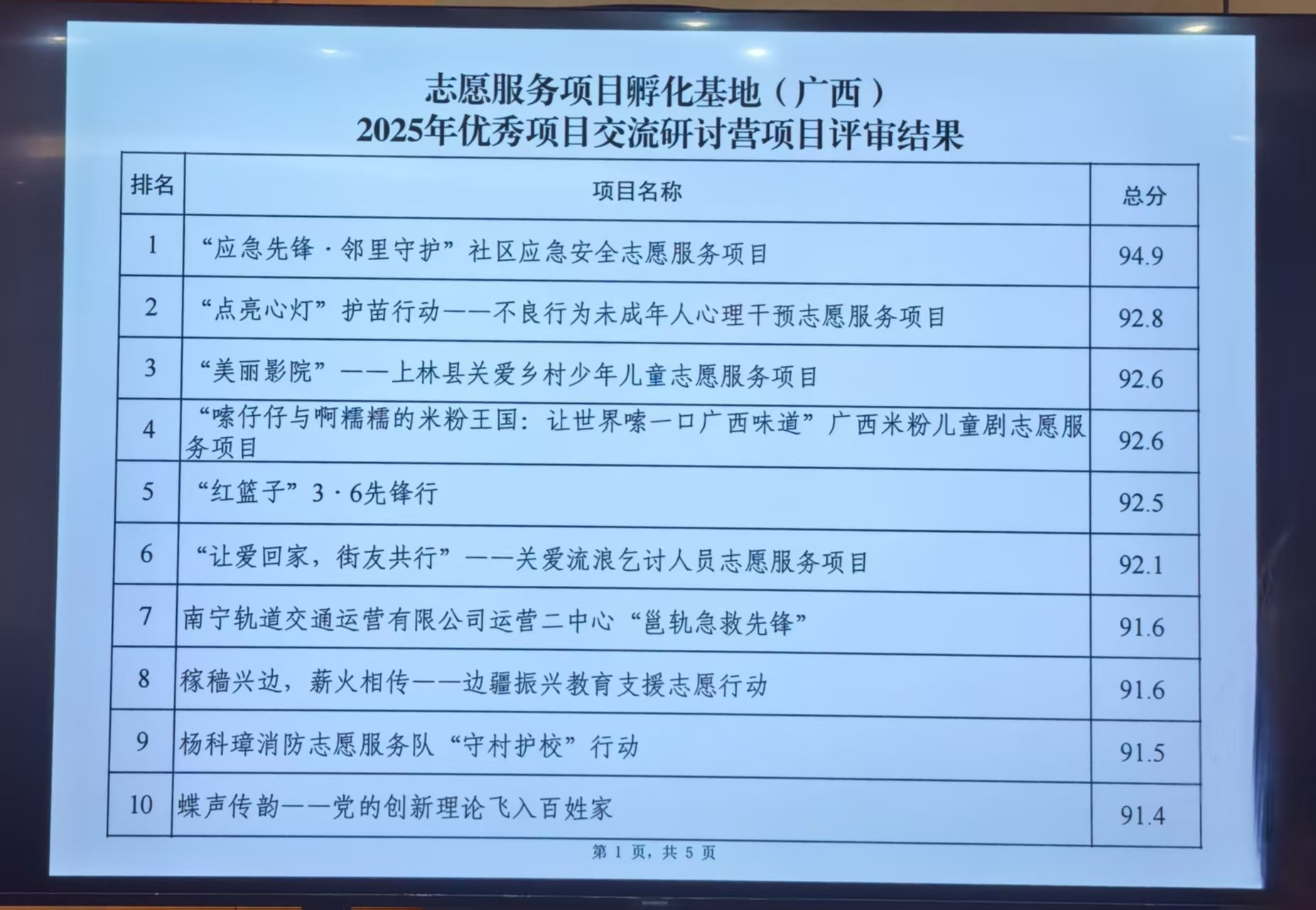近日,志愿服务项目孵化基地(广西)2025 年优秀项目交流研讨营在南宁圆满落幕。本次研讨营汇聚全区优质志愿服务项目,竞争激烈。其中,我校商学院学生第四党支部申报的 “红篮子”3・6先锋行 —— 桂乡党员直播助农志愿服务项目,凭借鲜明的党建引领特色、扎实的助农实效与创新的服务模式,历经两轮严苛评审与激烈角逐,从265 个参赛项目中脱颖而出,最终斩获全区第五名的优异成绩,充分展现了高校基层党支部在志愿服务与乡村振兴融合领域的积极作为。