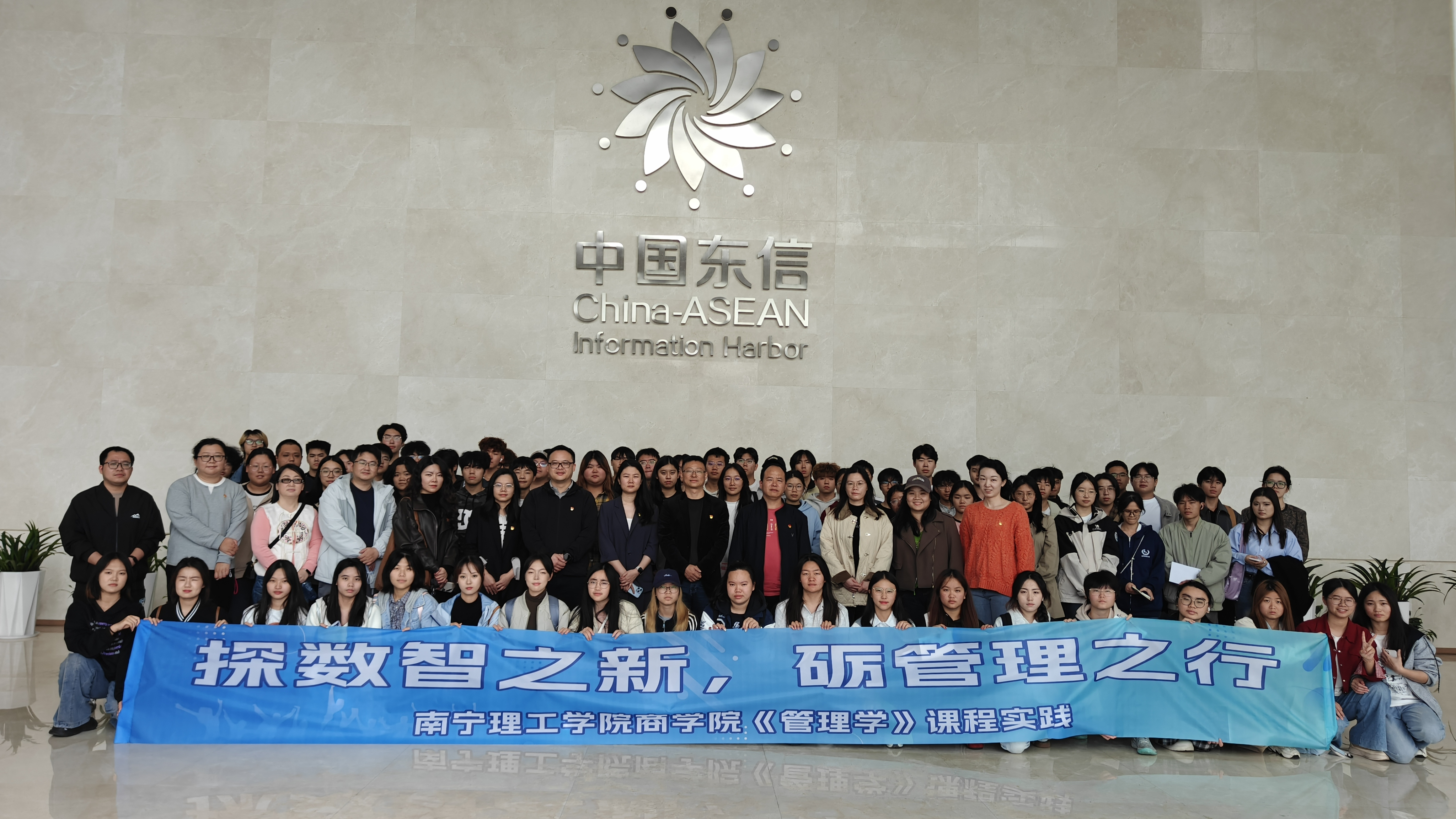 本次活动以“企业数智化管理与创新实践”为主线,师生们先后探访了中国—东盟信息港股份有限公司(以下简称“中国-东信”)与润建股份有限公司(以下简称“润建股份”),通过专题分享、实地参访、深度研讨等多元形式,让学生在数字时代的行业前沿场景中感知数智化管理魅力,在互动交流中激活其创新思维,同时将企业思政教育有机融入实践全过程,实现专业能力与价值引领的协同提升。