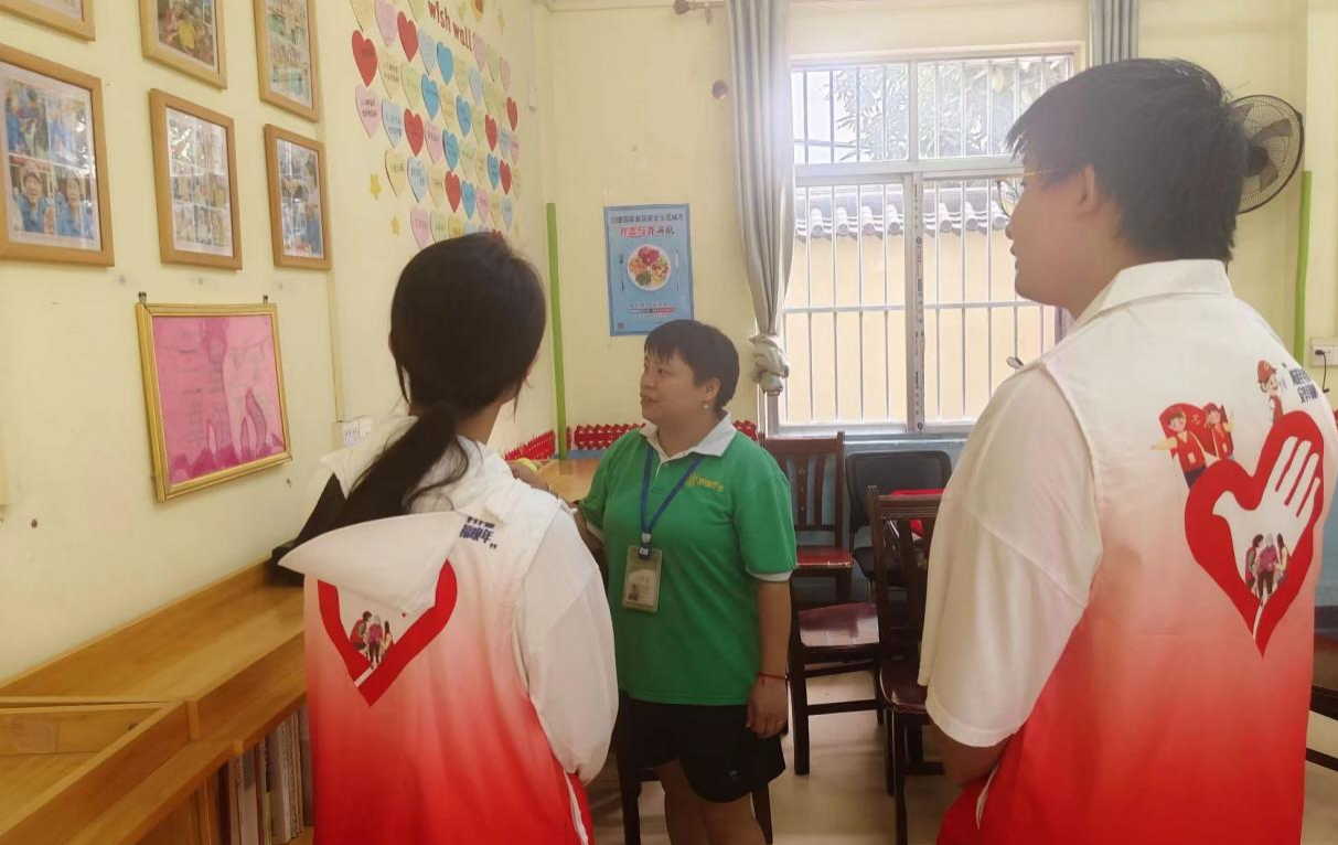 (图为团队成员在了解养老院政策情况 陈翠万 摄)