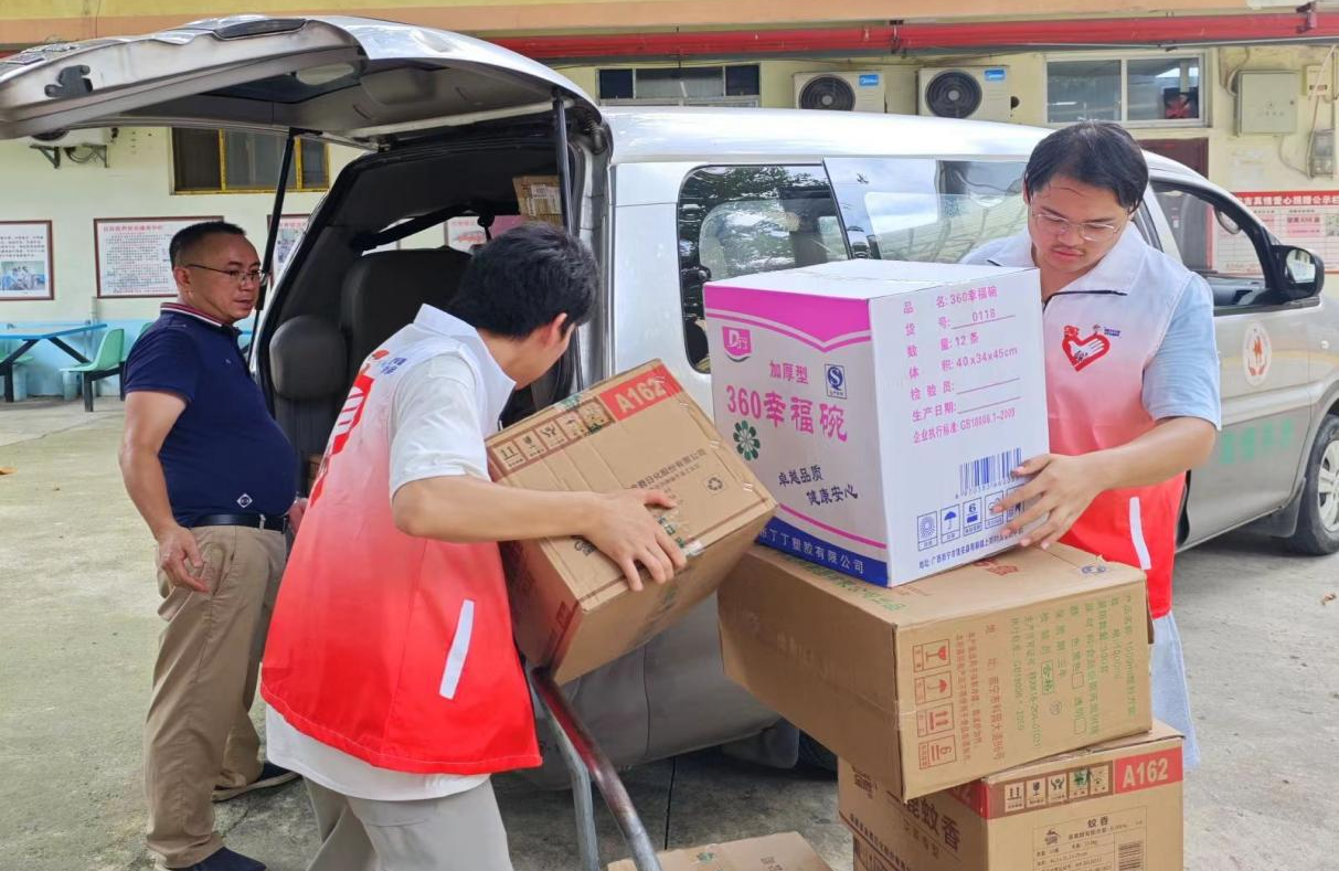 (图为团队成员帮忙搬运物资 陈翠万 摄)