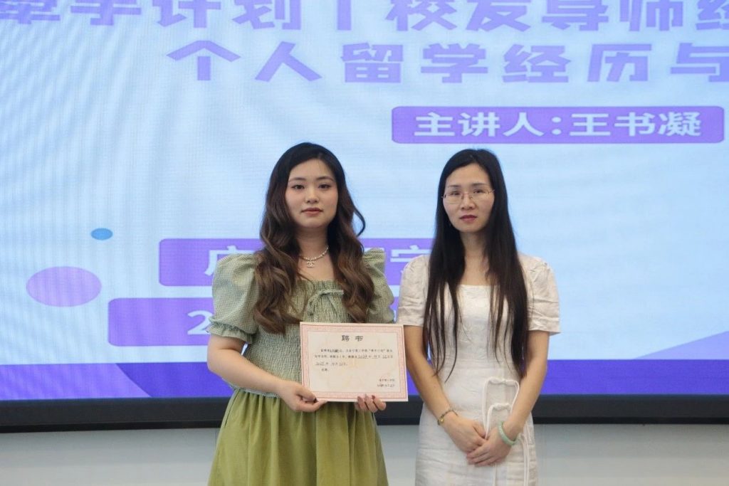 讲座后,姚顺良副教授为王书凝颁发“校友助学导师”。