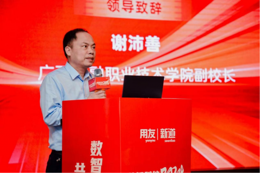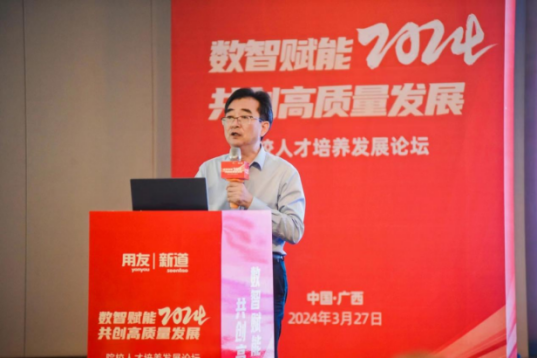 近日,由国家数智财经行业产教融合共同体指导,新道科技股份有限公司和用友网络科技股份有限公司联合主办,南宁理工学院、柳州城市职业学院、广西财经学院、广西职业师范学院等7所院校联合承办的“数智赋能2024共创高质量发展院校人才培养发展论坛”在南宁隆重举行。我校作为活动承办方,组织商学院教师参加本次论坛。