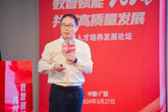 本次论坛洞察了产业数智化转型、数智化人才培养的前沿和方向,提出了数智化人才培养整体解决方案,展示了教育数智化转型的优秀案例成果,为推进广西高等教育和职业教育的数智化转型和创新发展提供了有效思路和方法。学院将以此为契机,推进产教融合,深化校企合作,推动数字化课程改革,促进专业内涵式发展,努力在“数智+”人才培养改革中走在前,促进技能链、人才链与产业链、创新链深度融合,让学生得以在“零距离”的实验、实习、实践中了解前沿技术,增强“数智”技能,打造商学院数智人才培养教育教学优生态。