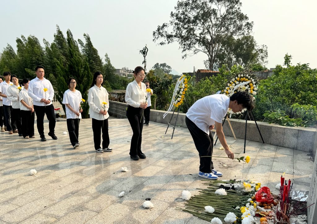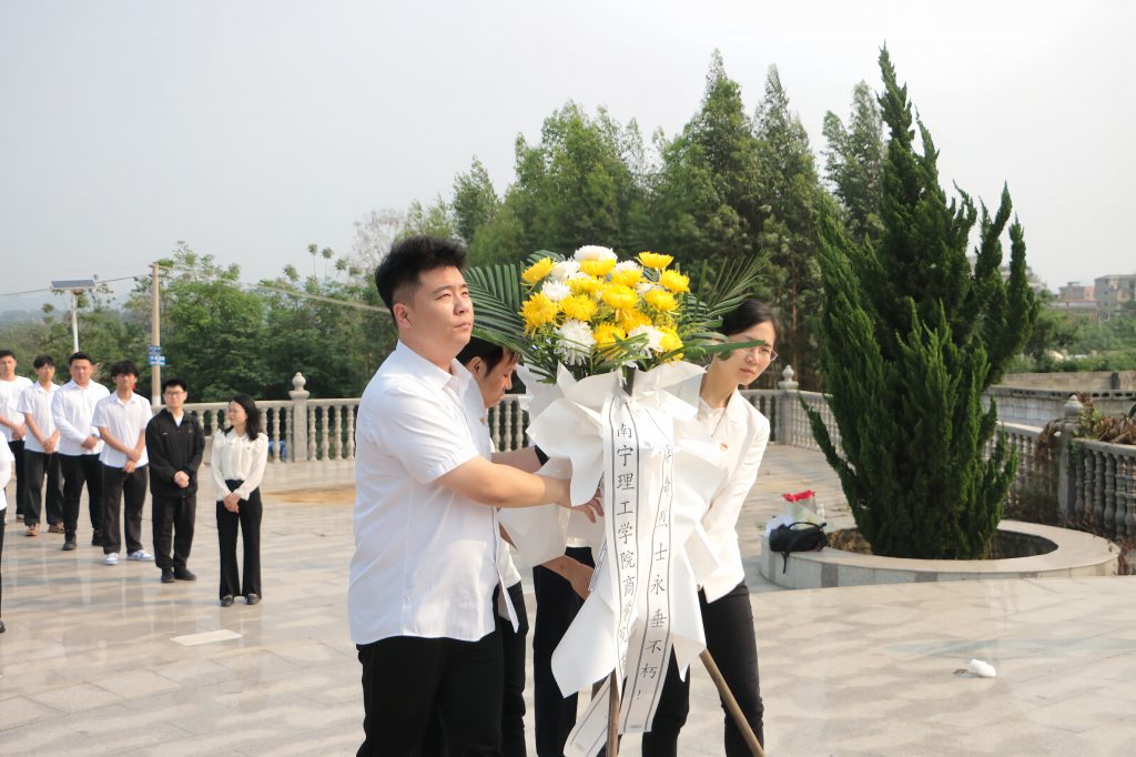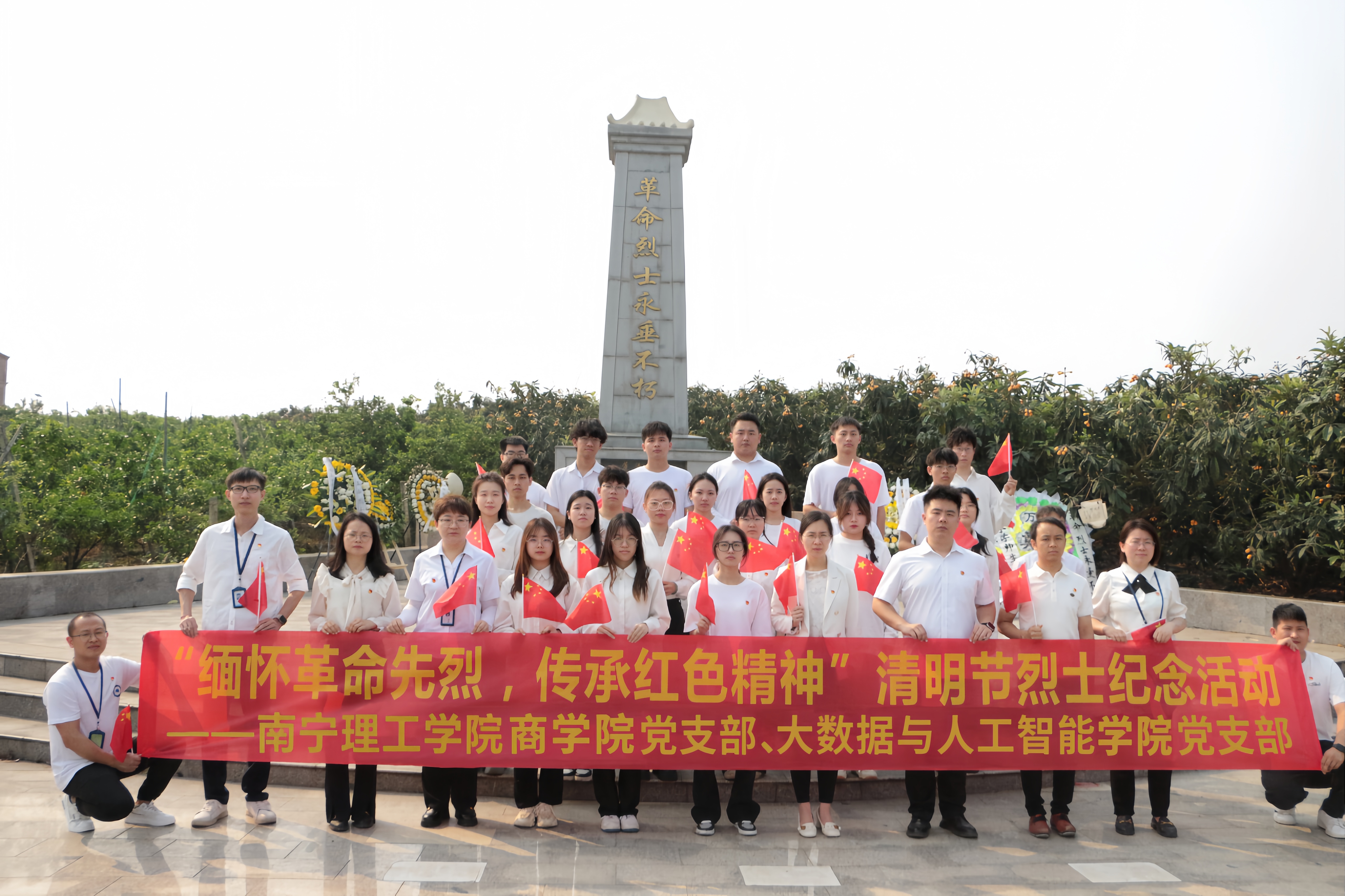 为深入贯彻习近平总书记“把红色资源利用好,把红色传统发扬好,把红色基因传承好”的重要指示精神,激发广大学生的爱国主义情怀,追寻烈士的光辉足迹,缅怀革命先烈的丰功伟绩,继承和发扬红色革命精神。4月3日,南宁理工学院商学院前往夏黄村烈士纪念碑组织开展“清明祭英烈,共筑中华魂”主题党日活动,分团委副书记杨笑宇,学院副教授姚顺良,辅导员梁爱想、罗超、李欢、秦幸峰、赵星璐、孟继志及学生代表们共同参加。