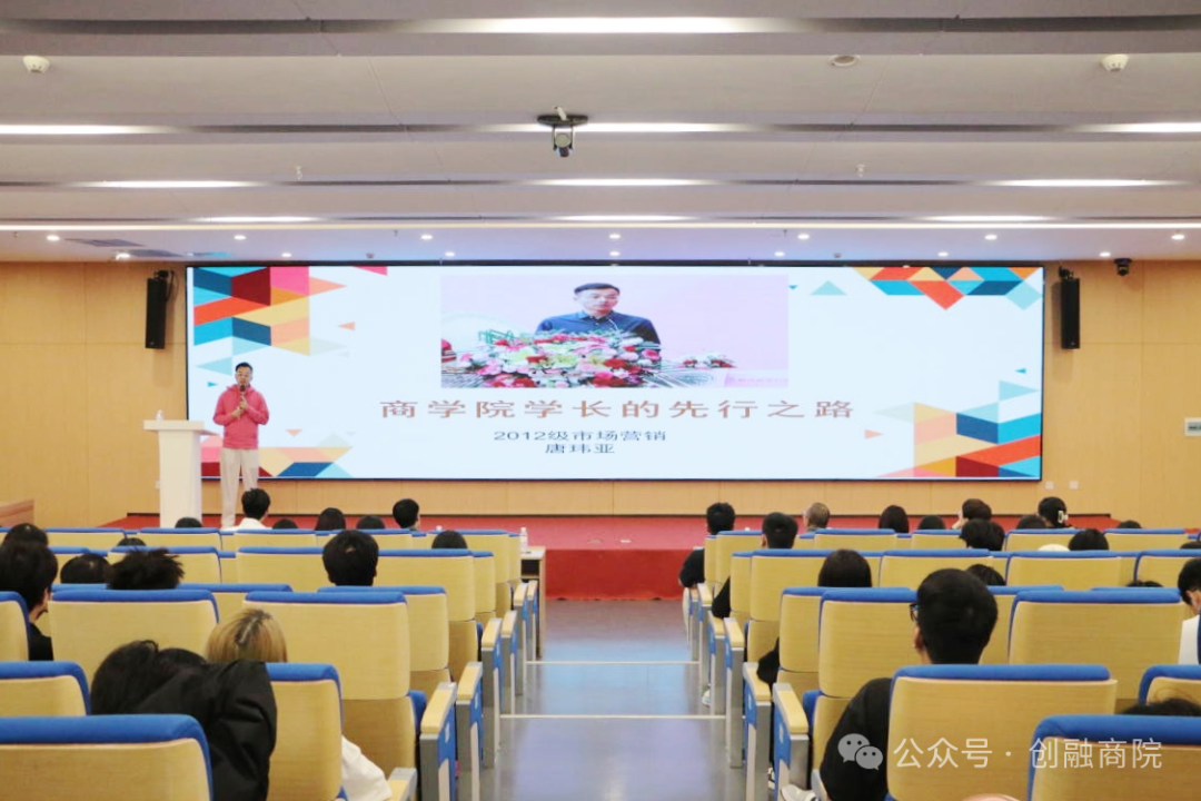 为激发同学们的创新创业热情,提供相关知识和经验,帮助大家更好地迎接未来的挑战,助力创新创业更好更快发展,3月20日,商学院开展首期“牵手计划”校友导师专题讲座,讲座特邀我校2016届级市场营销专业校友、2014届校学生会主席、现任桂林一苇投资咨询有限公司总经理唐玮亚作为主讲师授课。