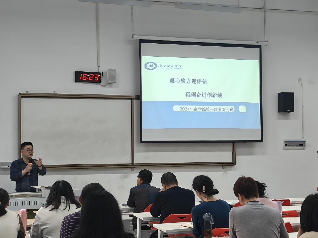 为更好地迎接新学期,更饱满地状态迎接评估检查工作,更全面地完成新学期各项工作,3月5日下午,商学院召开全体教职工工作会议。会议由姚顺良副教授主持,全院教职工出席会议。
