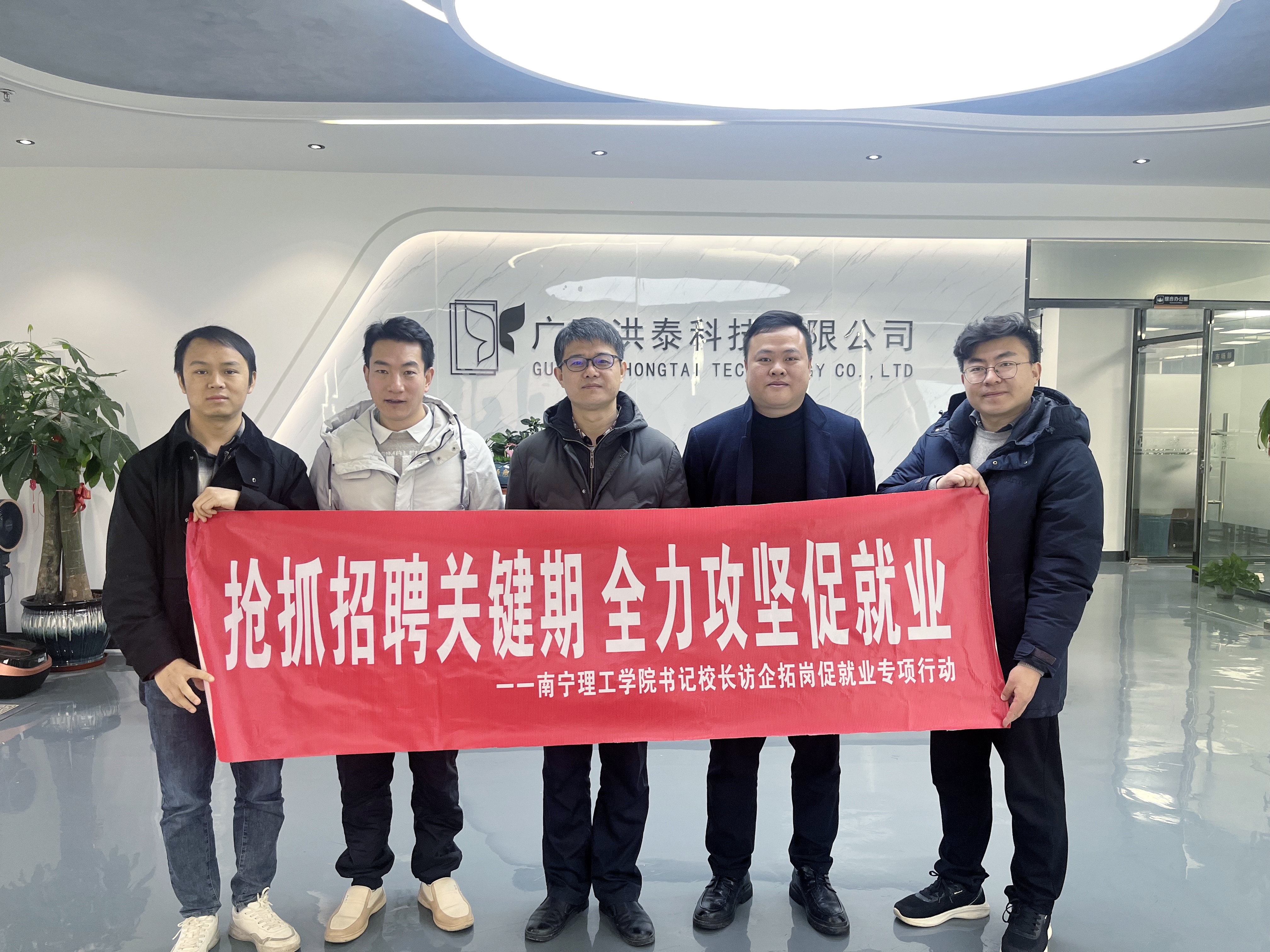 2024年2月27日,开学之际商学院副院长囤荣立带领商学院部分老师积极开展“访企扩岗促就业”活动。此次扩岗专项行动主要走访的是位于中国(广西)自由贸易试验区南宁片区华威路16号南向电子信息产业园4号楼—广西洪泰科技有限公司,该公司主营电子专用材料研发、光学玻璃销售、新材料技术研发、电子元器件制造等多种科技产品,公司主营科技推广和应用服务行业,公司总部在广东深圳。