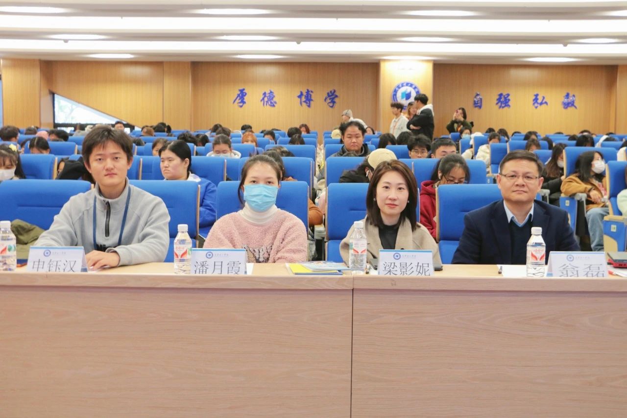 为帮助我校在校大学生、毕业生了解国内各城市青年人、新市民等群体住房困难的分析和解决途径,为我校即将毕业的同学们提供更多广西地区青年住房租房保障服务和社区支持建设,我院特别邀请了来自广西住房保障研究会的翁磊会长与华住集团相关企业领导莅临学校开展讲座。讲座于12月23日下午图书馆1楼报告厅顺利举办。出席本次活动的领导嘉宾有学校党委副书记、校长助理马纪涛,广西住房保障研究会会长翁磊,华住城家广西区域运营总监陈凡驹,华住城家广西区域运营经理梁影妮,华住城家企业代表刘诗聪,华住城家企业代表潘月霞,商学院分团委副书记杨笑宇,商学院教师代表申钰汉,任雪婷,李文媛等。