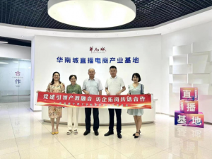 (现场图片五 校长王金叶等领导走访华南城直播电商产业基地)