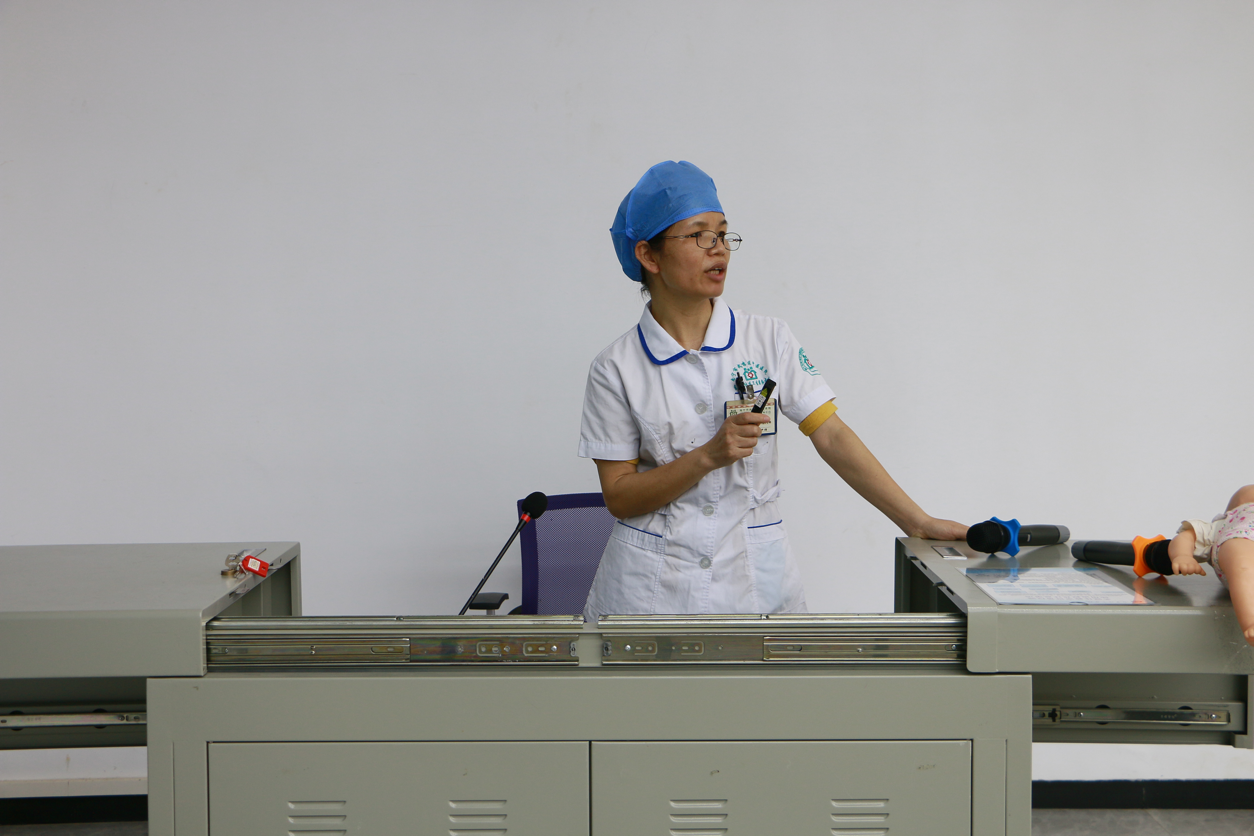 在理论环节,潘梅平主管护师结合病例分析,深入浅出地介绍人工呼吸、止血包扎等技能的原理、注意事项和操作流程。在实践环节,潘梅平主管护师具体从“救护概论”“心肺复苏”“止血方法”“包扎方法”四个方面,对应急救护知识进行了系统的解读,并以模拟橡胶人为器具,现场演示了正确的心肺按压的方法。现场同学踊跃参与互动,进行心肺复苏操作等急救技能实践。她提出,学院应加强建立完善的急救体系,扩大急救设备覆盖率,并提醒同学们遇到突发事件可以用今日所学帮助他人,将急救知识的普及对象从重点群体重点行业扩展至全社会。