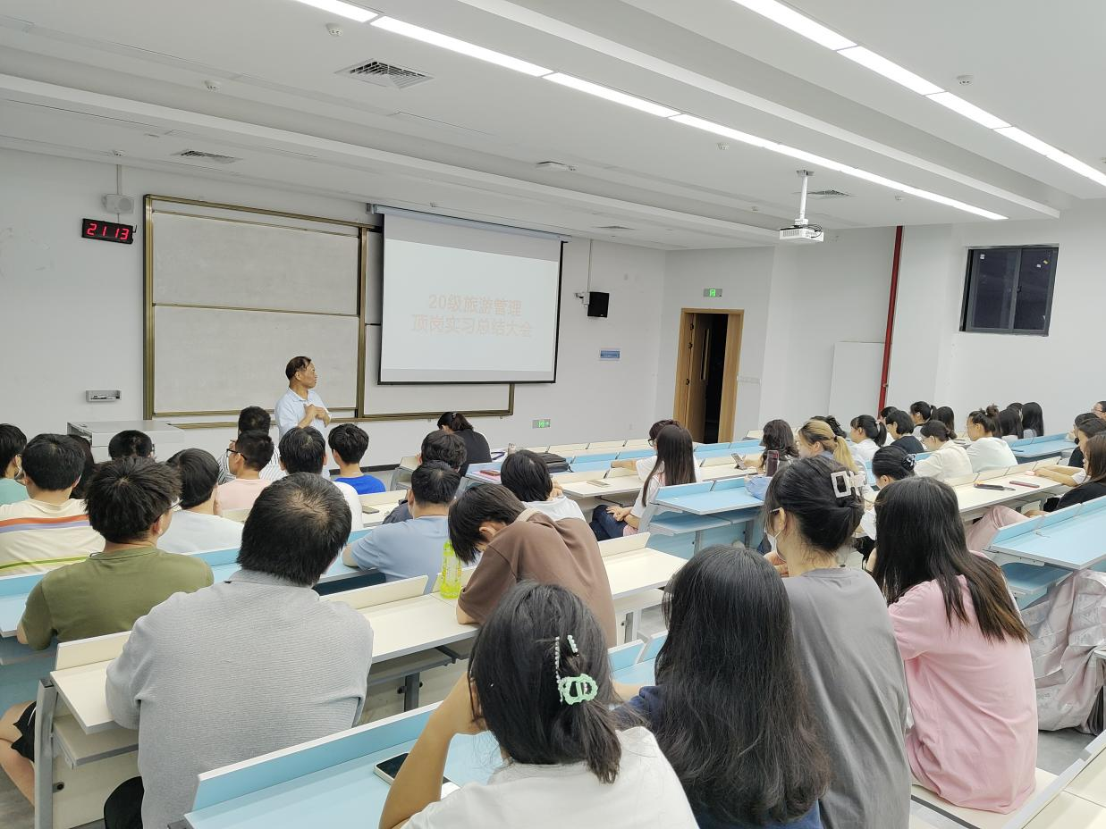 首先由钟俊光老师对实习总结报告提出了要求,报告大会采取PPT汇报和个人总结的形式进行。2020级同学们认真总结为期半年的实习生活,从多角度多方面展示了实习生活的丰富多彩,通过文字和图片视频描绘出在酒店、民宿等地的不同景色和工作生活,在实习期间,同学们从不同工作中都增长了自己的见闻和相关知识,展示了工作生活的精彩画卷,进一步提高了与人相处的交往能力,为未来的工作奠定坚实基础,同时也为2021级同学们提供工作经验和工作方法,为下一级同学加油鼓劲,激起2021级同学们的工作兴趣和工作活力,鼓励同学们坚持不懈,再接再厉,再创新高。