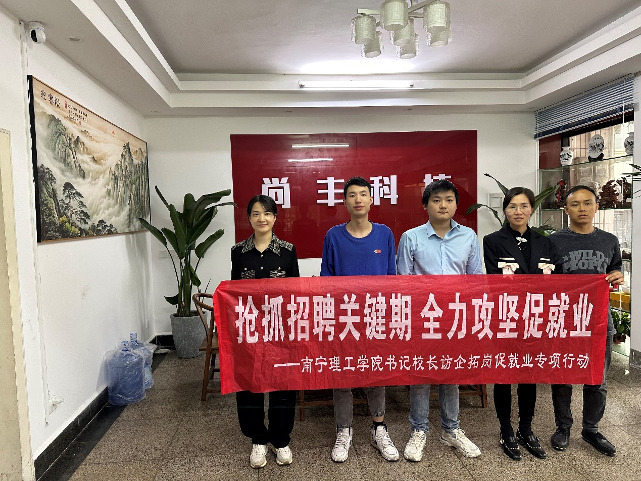 2023年4月14日,南宁理工学院开展“访企拓岗促就业”系列调研活动,商学院总支书记姚顺良、辅导员孟继志、会计学教师黄志媛深入广西尚丰信息科技有限公司——调研,开拓就业岗位、深化校企合作,促进毕业生高质量就业。