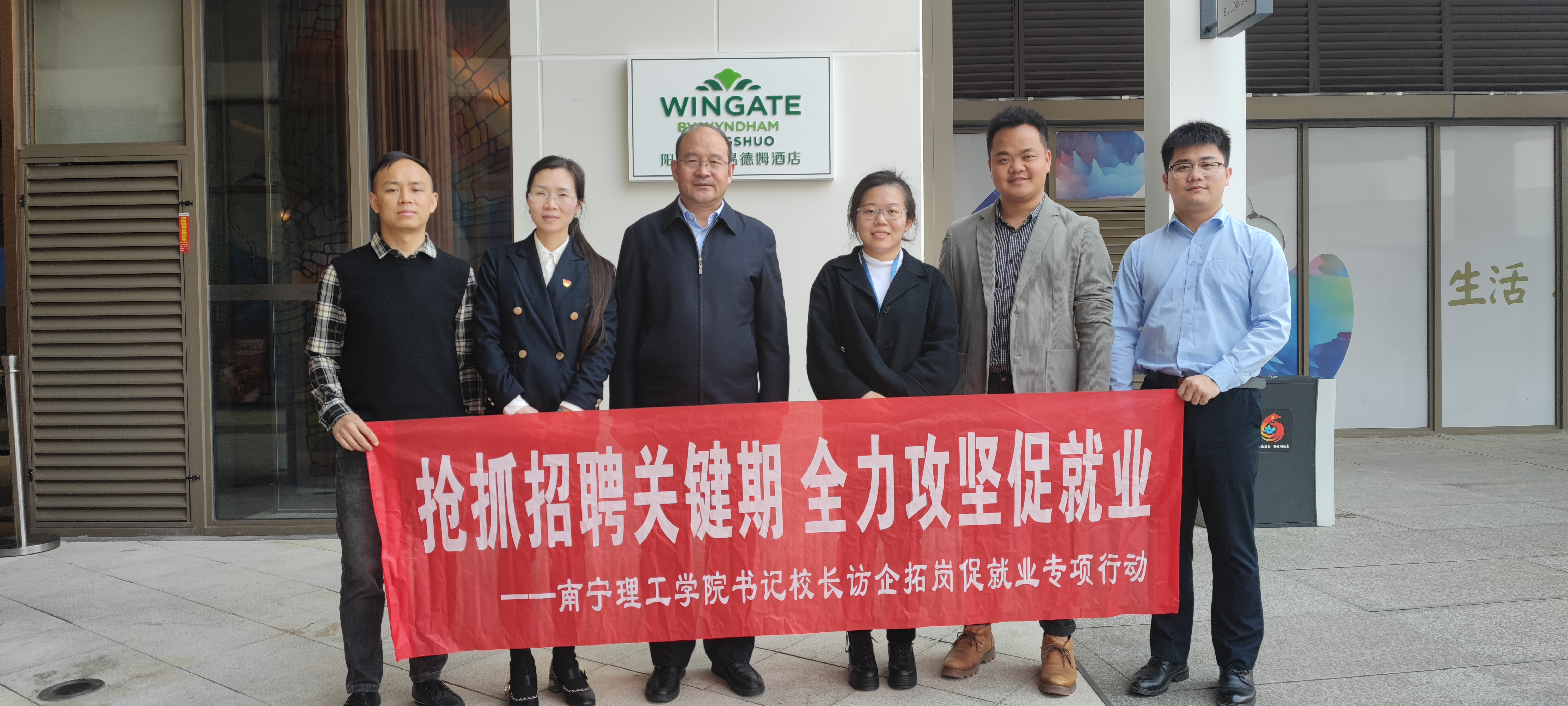 2023年3月入学后,南宁理工学院持续开展“访企扩岗促就业”专项行动。4月7日上午,校长王金叶同志、商学院党总支书记姚顺良同志带头示范,商院毕业班辅导员积极参与、协同发力,主动走访阳朔蔚景温德姆酒店,发掘校企合作契合点,深入拓展就业岗位资源。