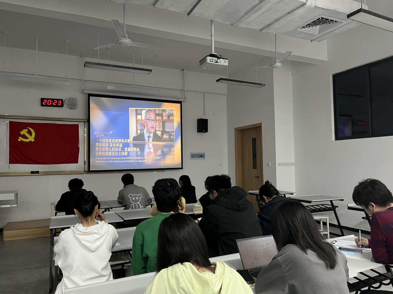活动伊始,赵玉龙书记带领全体党员同志观看视频:学习全过程人民民主。通过专家的讲解让党员同志们了解什么是全过程人民民主,解读了党的二十大精神。学习习近平外交思想——共同富裕,通过观看访谈视频的形式学习什么是共同富裕,使各位党员们明白共同富裕是不忘初心的一种表现,每一代都需奋斗,为自己为国家,才可实现共同富裕。大会最后,赵玉龙书记对上级党委精神部署要求进行解读,并督促学生党员们要认真学习贯彻党的二十大精神。