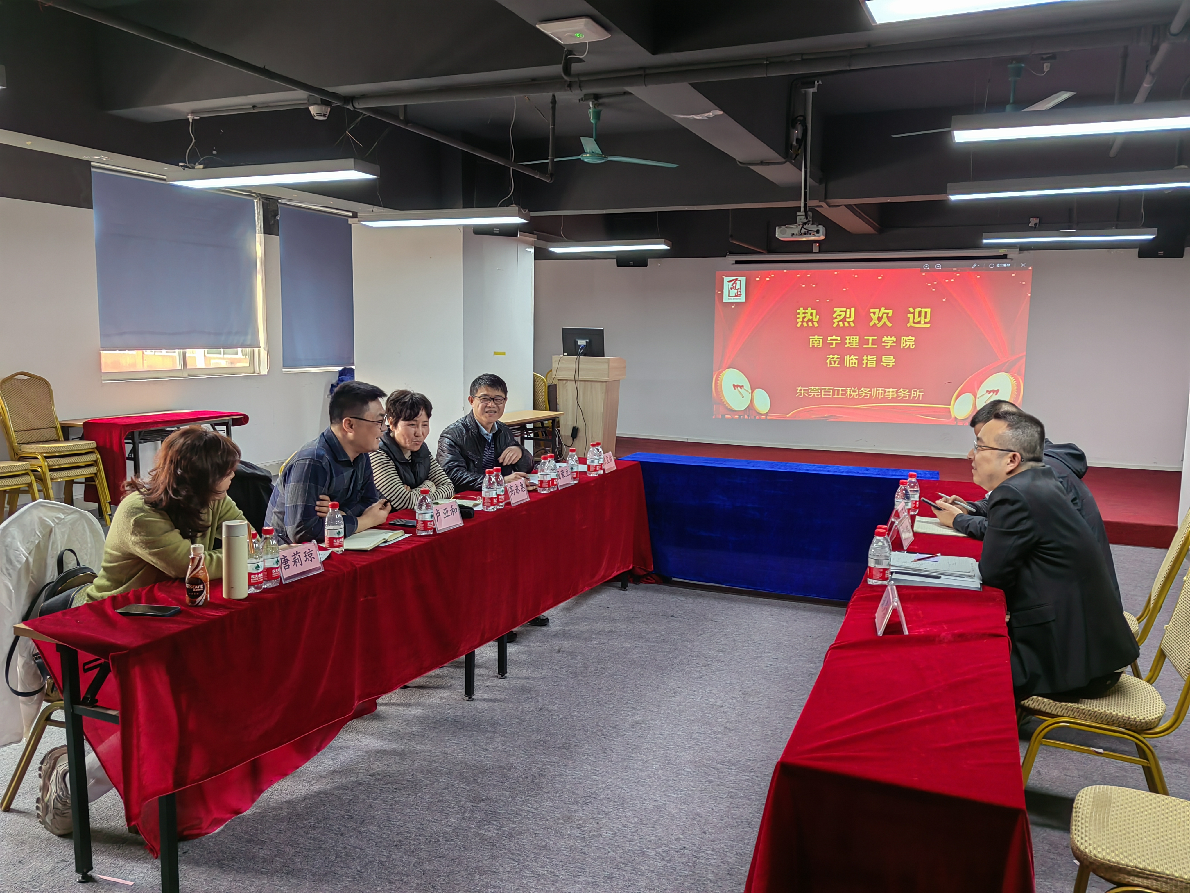 在东莞百正税务师事务所座谈交流时,企业负责人郭伟介绍了企业的基本情况,指出了当前毕业生普遍存在缺乏实践能力、胜任力不够、对进入社会准备不足等问题,结合企业用人标准与需求,对学院人才培养模式提出了一些建议,并表示愿意为实习生、毕业生提供实习、就业的机会,共同开拓校企合作互惠共赢的局面。