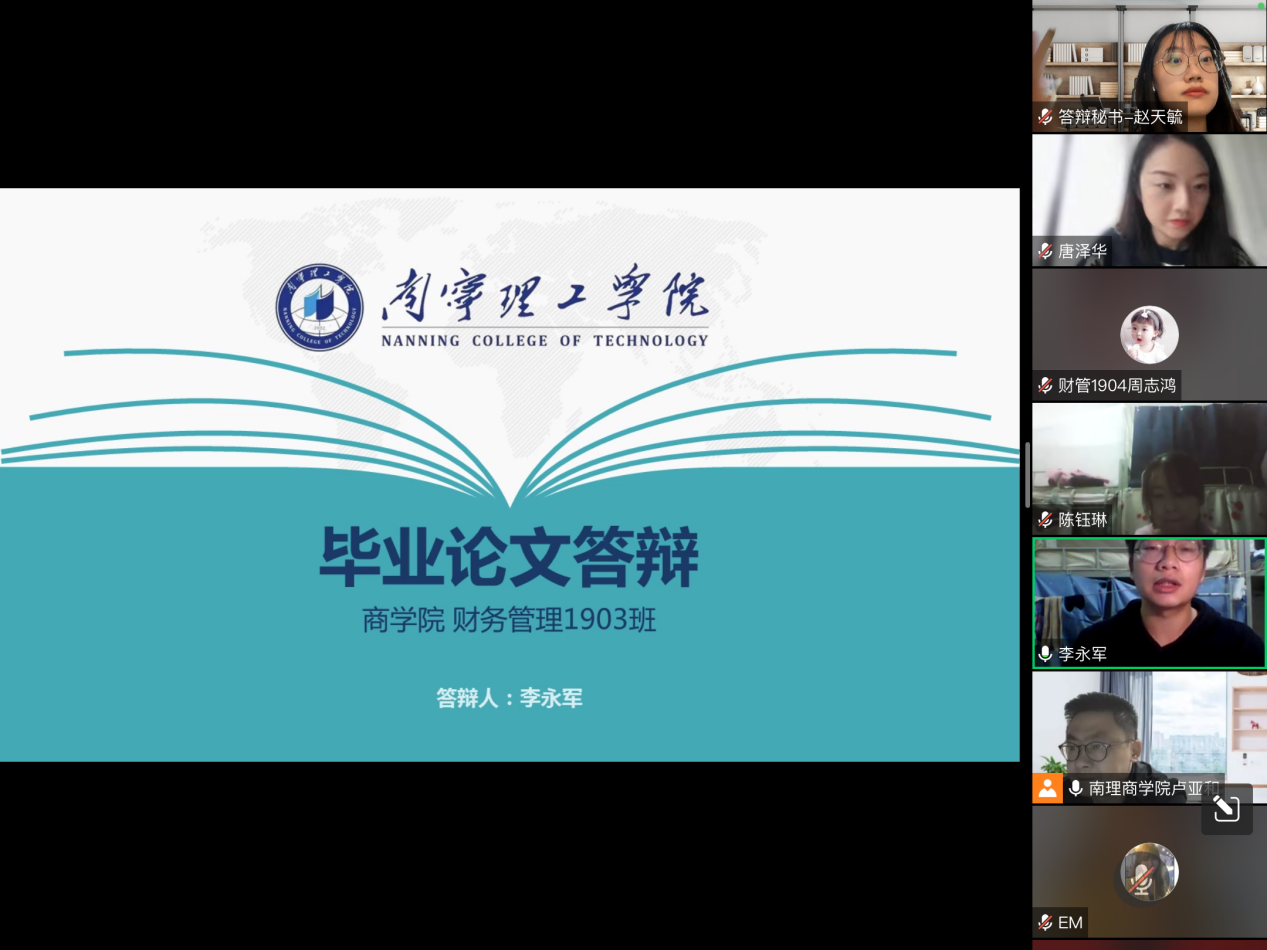 答辩会采取PPT汇报和提问环节的形式进行。参加答辩的同学们从论文选题目的、论文框架及论文内容等多方面进行阐述;提问环节中,答辩组老师围绕论文题目、论文格式、论文内容及存在的缺陷提出相关问题,考查同学们对毕业论文的撰写要求和专业知识的掌握程度。从答辩情况来看,各答辩小组组织有序高效、流程规范,老师们学识渊博、治学严谨,针对论文中存在的问题,逐一点评,提出了专业科学合理的修改意见,学生们思维敏捷、有辩有答,既敢于阐述自己独到的新观点,又敢于承认自己的不足,修正错误。