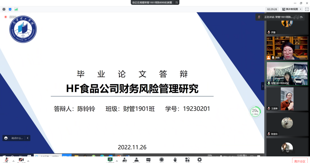 2022年11月26日、27日,商学院通过腾讯会议开展2023届财务管理(专升本)专业毕业论文线上答辩会。本次答辩会分为7个小组进行,每个答辩小组由3名答辩老师和1名答辩秘书组成。