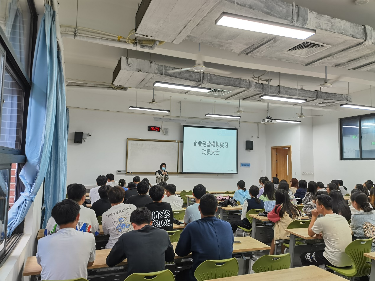 11月24日下午在东盟校区A3214多媒体教室举行了工商管理专业企业经营模拟实习动员大会。李欣欣老师为本次动员会的主讲人,20级工商管理全体同学参加大会。