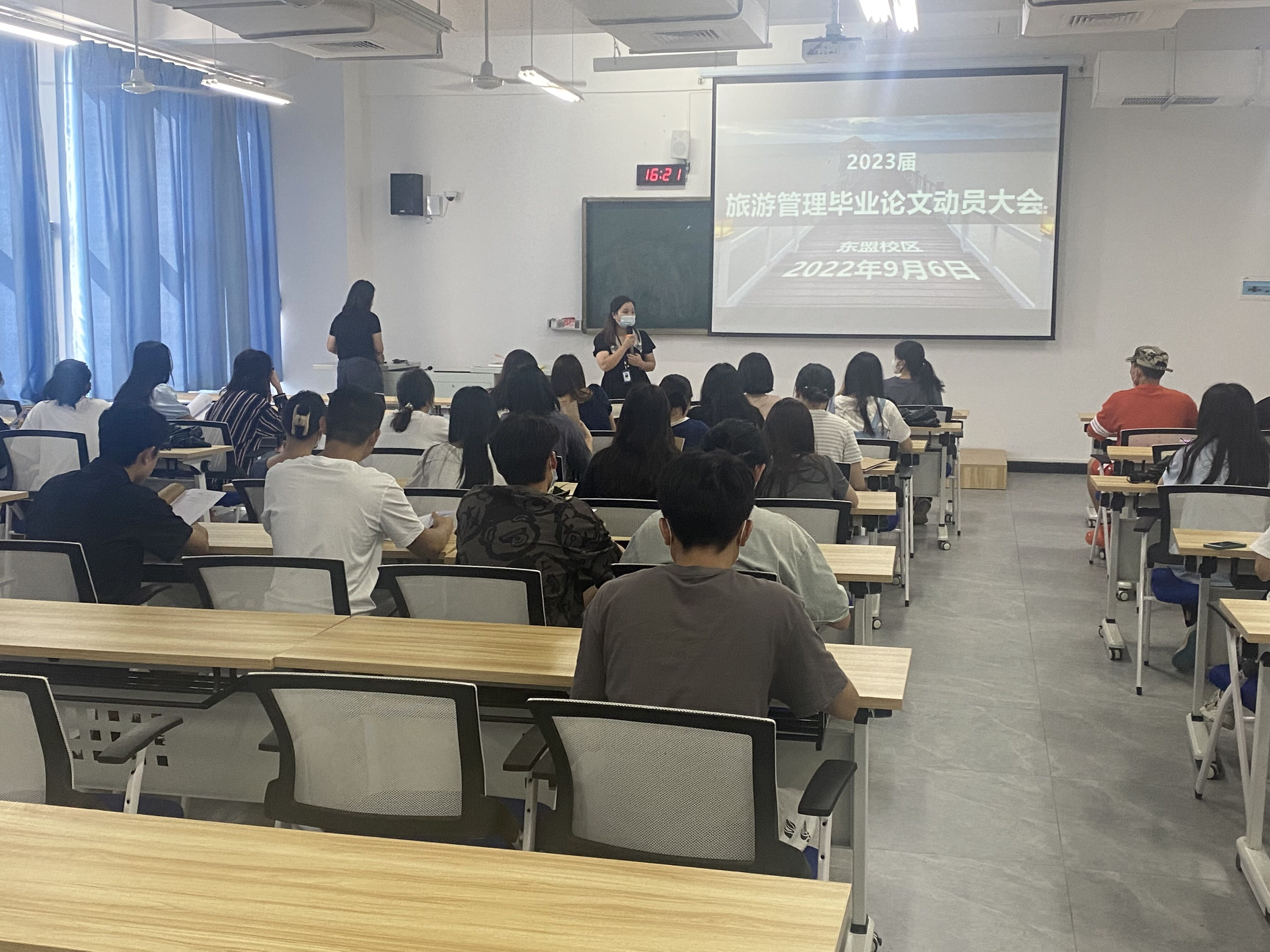 通过本次动员大会,使旅游管理23届的同学们充分认识到毕业实习的重要性和具体要求,同时对毕业论文的撰写也有了初步的了解。同时,希望同学们能处理好毕业实习与毕业论文的工作安排,合理规划毕业论文进度,提高答辩质量。