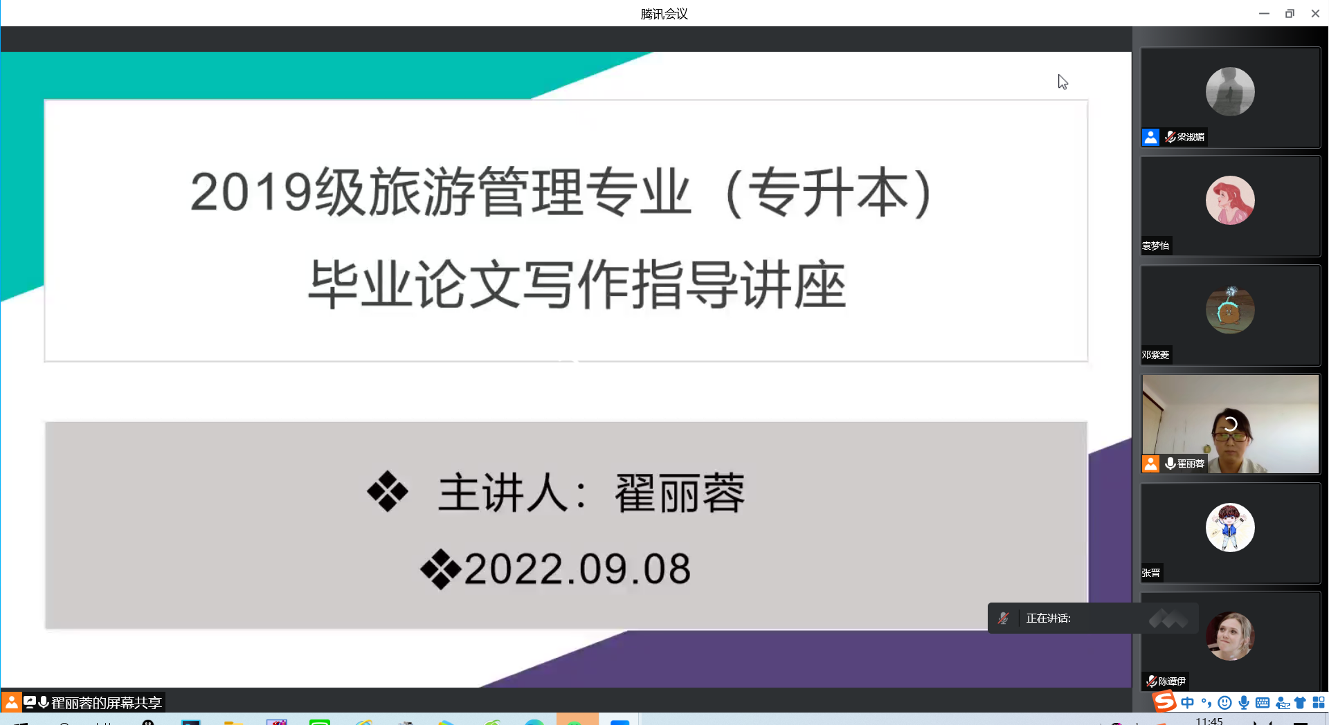 9月8日上午,由翟丽蓉老师通过线上形式,从毕业论文的选题、论文调研、资料收集、论文写作、论文格式及毕业论文相关资料的撰写等方面想同学们做了详细说明,希望同学们能端正态度,认真对待毕业实习和毕业论文工作,按照要求完成大学里最后一项教学任务,并在会议结束之际给学生们布置了论文选题的相关任务。