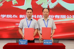 学校董事长尹少华与新道科技股份有限公司广西区总经理吴征科共同签署并揭牌校企合作产教融合基地——智能财务产业学院,共同开启企业与高校联合培养人才模式的新发展方向。