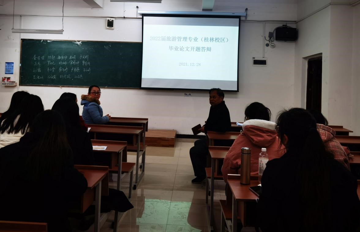 2021年12月28日下午,2022届旅游管理专业(桂林校区)在1栋1115教室召开了毕业论文开题答辩会,2018级桂林校区的旅游管理全体学生及部分指导老师参加了会议。