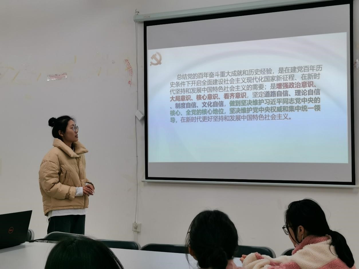 通过本次学习,党员同志对十九届六中全会精神有了更深入的认识,使同志们在今后的学习中做到更进一步的融会贯通,真正做到学深悟透、入脑入心,持续推进“我为群众办实事”实践活动。青年学子,生逢盛世,不负党恩,不负时代重托,以党的旗帜为旗帜,以党的方向为方向,为全面建设社会主义现代化强国积蓄力量。