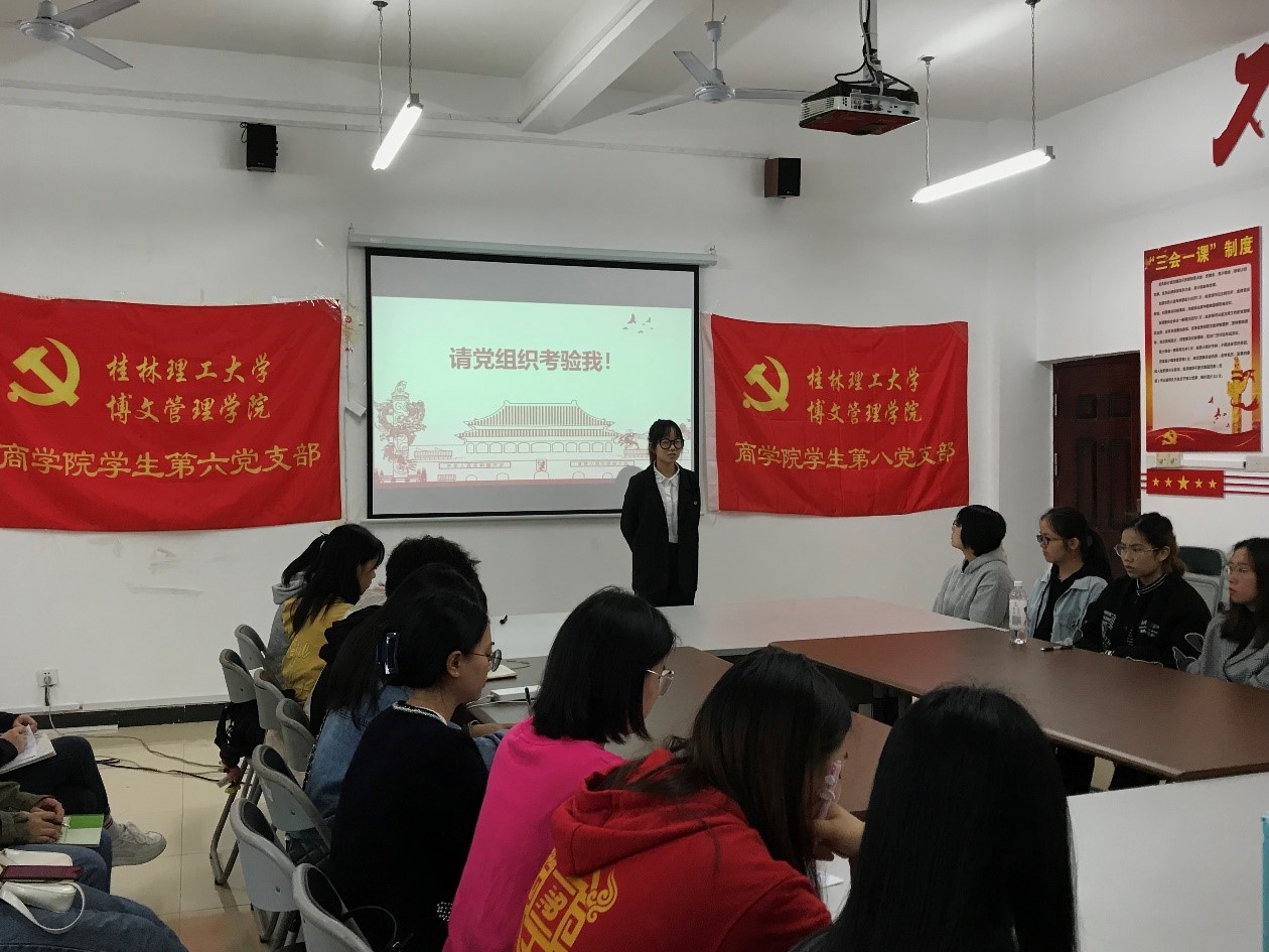 2021年11月1日上午,商学院学生第八党支部在1410教室组织开展了入党积极分子转发展对象答辩会。本次会议由梁晓洁同志主持,支部全体党员和预备党员参加此次会议。