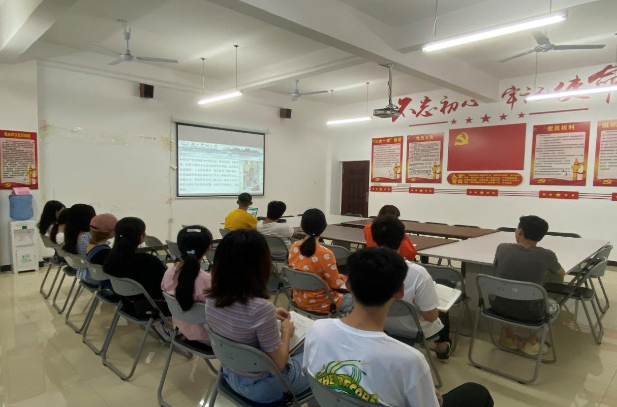 为了深入学习习近平总书记在建党100周年大会上发表的重要讲话精神。我院2021年7月6号上午在1410会议室组织观看“坚守理想,践行初心,昂首阔步,踏上新的赶考之路”云直播党课。云直播党课由广西师范大学马克思主义学院二级教授、原副校长钟瑞添教授主讲。部分在校学生党员(预备党员)、积极分子观看。