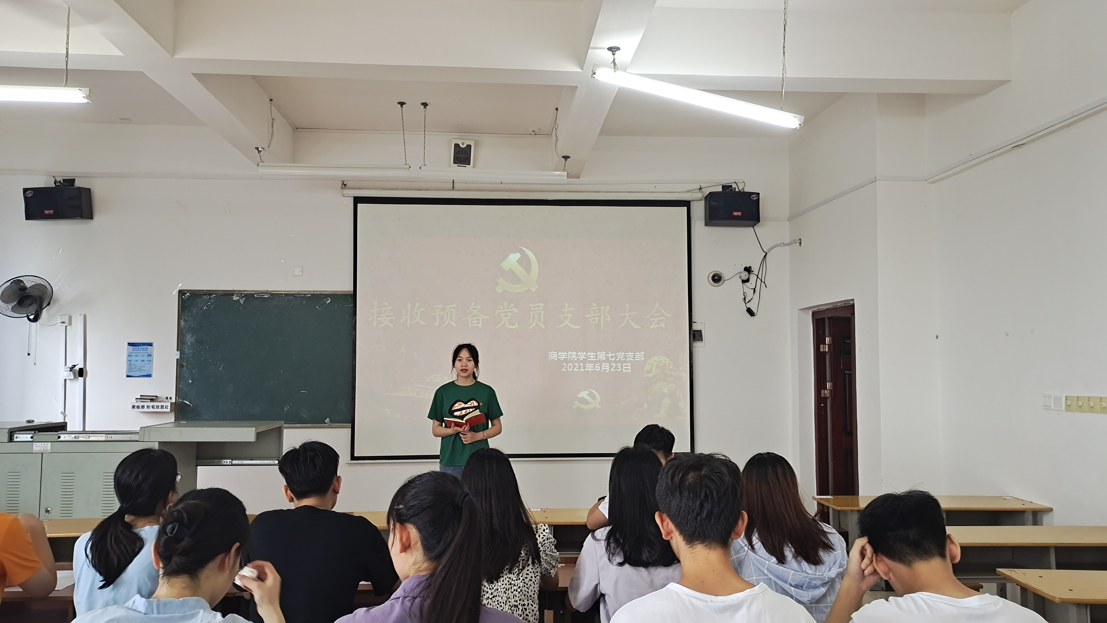 6月23日,商学院学生第七党支部于1414教室召开预备党员接收大会,本次会议由支部书记杨明同志主持召开,参加本次会议的有商学院学生第七党支部全体党员同志及发展对象。