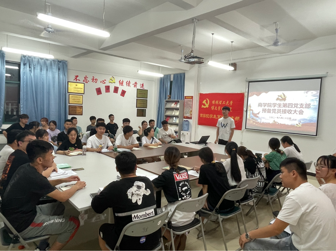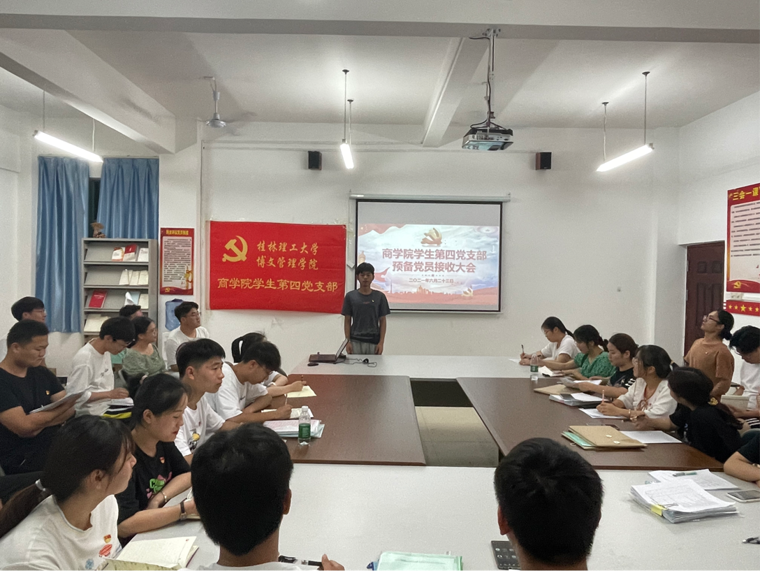 6月23日晚上,商学院学生第四党支部在1410会议室隆重召开了新发展预备党员接收大会。本次会议由商学院学生第四党支部书记赵玉龙同志主持,全体正式党员、预备党员及发展对象参与此次议会。