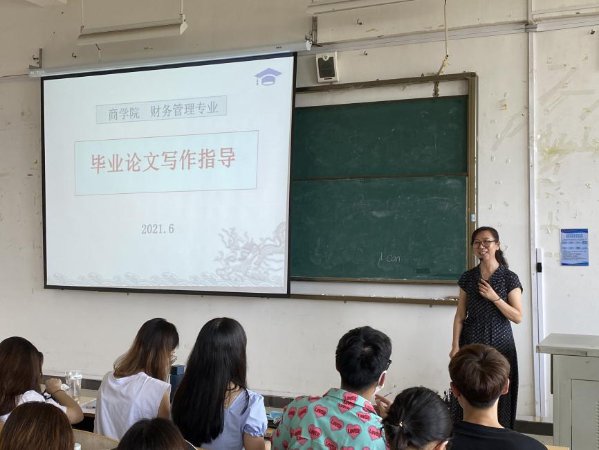 为了让同学们更加顺利的完成毕业论文的任务,2021年6月24日,商学院财管教研室在4502教室召开了18级财务管理专业毕业论文(第一批)动员大会。担任本次动员会的主讲人有刘丽影教授和陈俊老师。