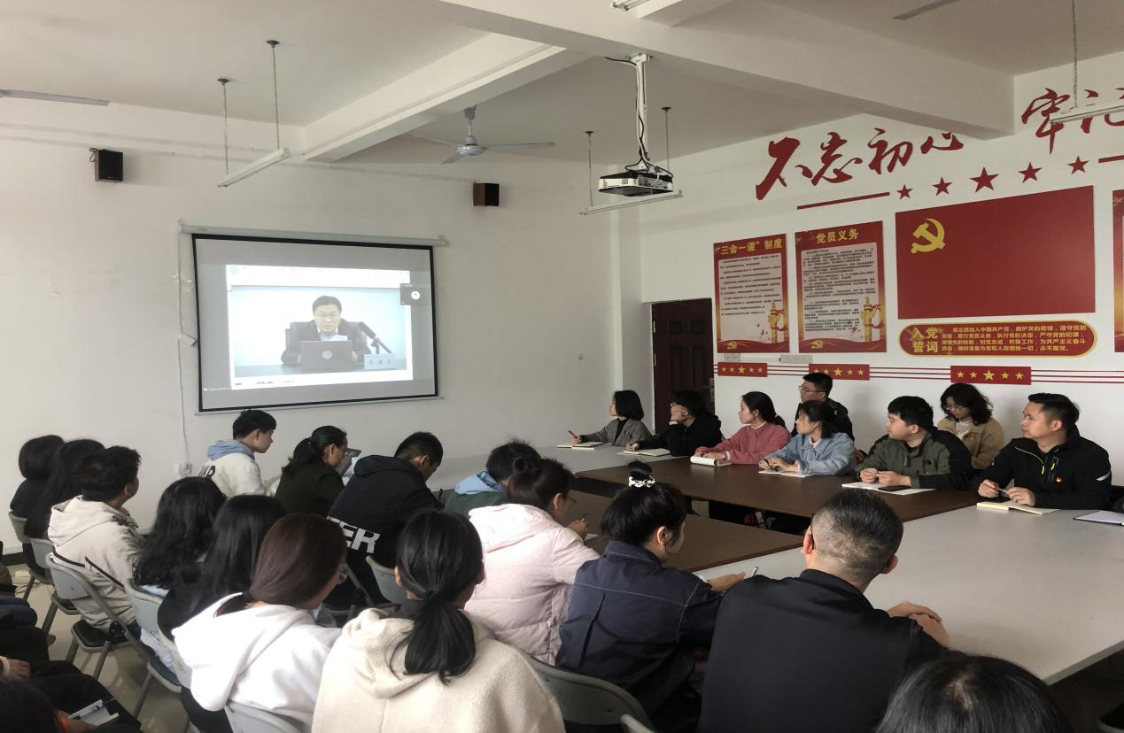 为贯彻落实习近平总书记在学校思想政治理论课上重要讲话精神,商学院党总支于4月9日在1410会议室集体观看《周末大讲堂第五十三讲》直播,在校全体师生党员、入党积极分子参与活动,本次活动由支部书记梁业武主持。