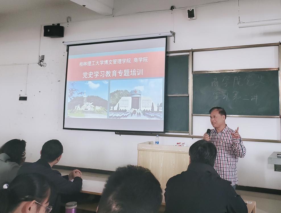 为深入学习并贯彻落实习近平总书记在党史学习教育动员大会上的重要讲话精神,传承红色基因,感悟初心使命。4月6日,商学院党总支在1209开展“学党史、守初心、庆百年”党史学习第二讲教育活动。主讲人王熙兰教授,曾任桂林旅游学院科研处副处长主持工作、学术委员会委员、旅游策划教研室主任等,现为桂林旅游高等专科学校教授。商学院全体师生党员、入党积极分子参与学习。活动由商学院分团委书记钟俊光主持。