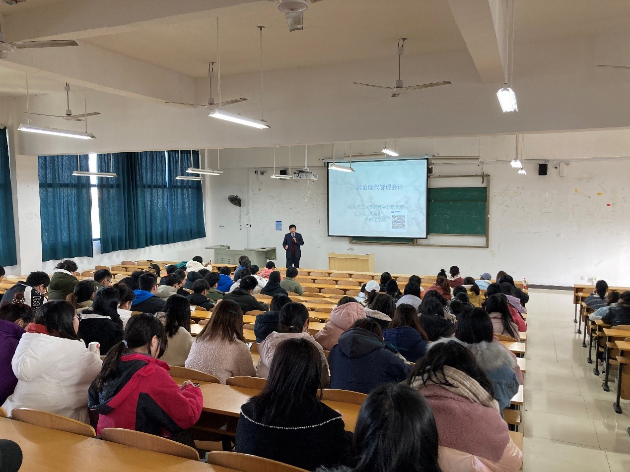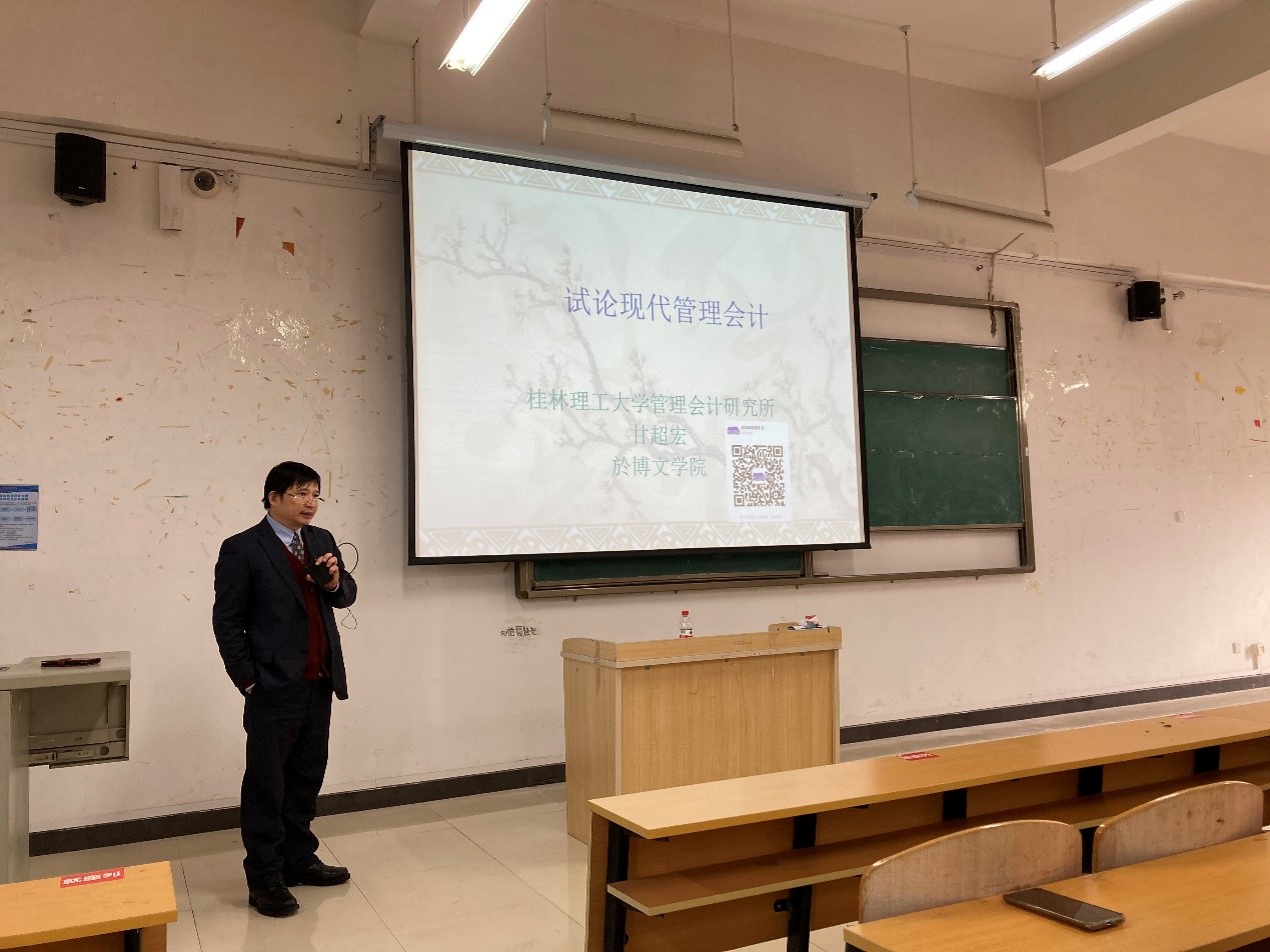 2020年12月31日,商学院财会教研室邀请桂林理工大学甘超宏副教授、博士给财会专业学生进行一场现代管理会计发展的讲座。甘博士从管理会计的产生到现代管理会计主要发展方向进行了介绍,并重点介绍日本的精益管理的发展,使在座的老师和同学对管理会计这门科有了更深入的了解,对未来会计学科发展、职业规划有了更进一步的认识。财会教研室任老师主持了本次讲座。