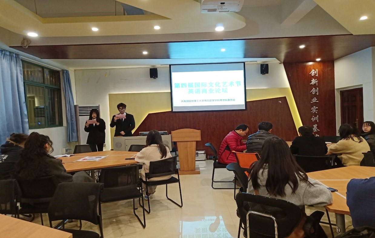 为丰富校园文化生活,让更多的同学提高国际视野,提升国际文化交流能力。2020年12月29日,商学院在1105实训室举办了第四届国际文化艺术节商业论坛活动,商学院全体辅导员以及18、19级各专业学生代表参加了本次论坛。