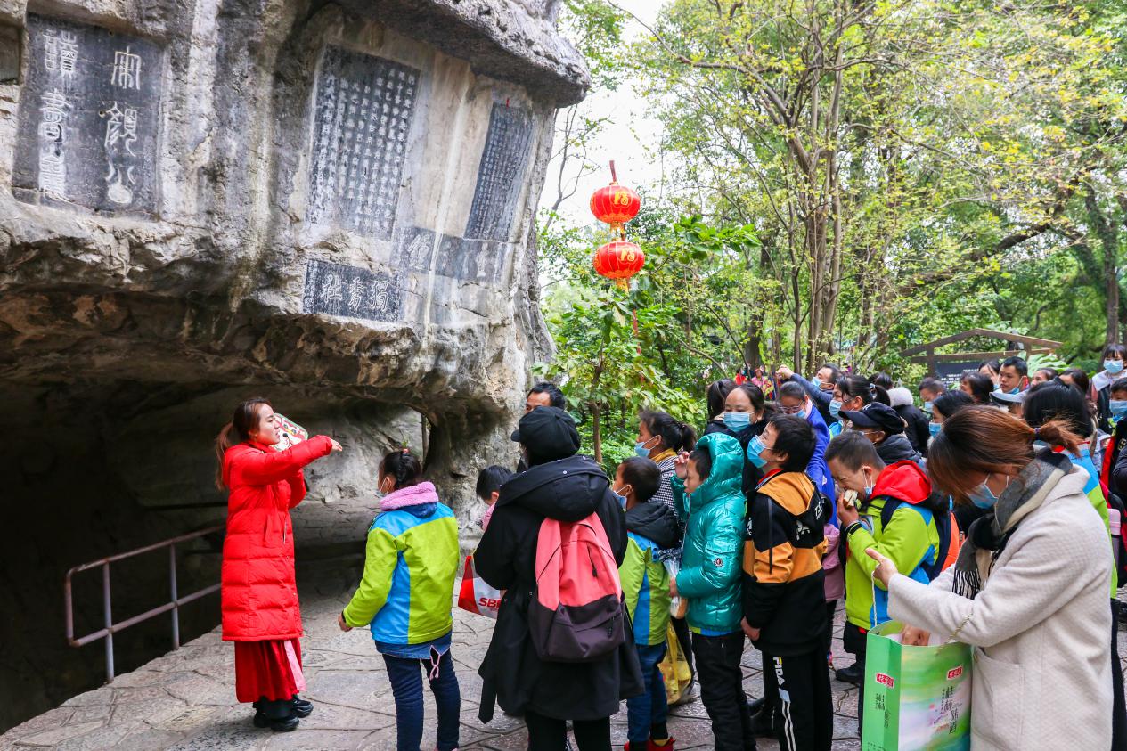 找桂林——在摩崖石刻寻找"桂林山水甲天下"的字眼。独秀峰的摩崖石刻,书法精美,笔势恢宏,那句名扬天下的"桂林山水甲天下"便是源自于此。通过自主寻找、认读"桂林山水甲天下"的字眼,感受桂林深厚的文化底蕴。同时调动儿童现有的知识储备,发展特殊儿童的视觉搜索能力。