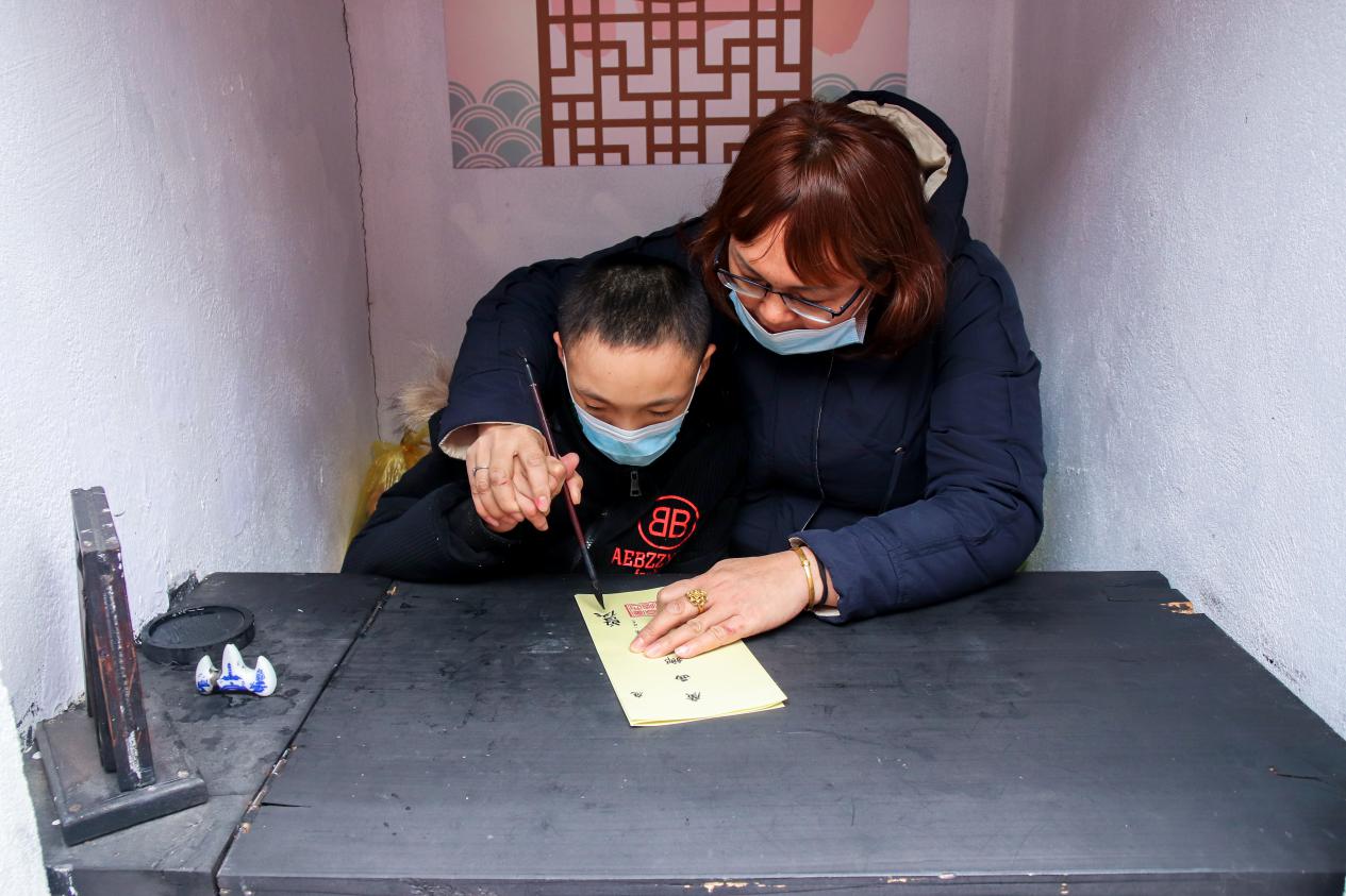 做桂林——为了让学生与家长切身体会到文化的魅力,在志愿者的带领下完成了秘拓福字的任务。装纸、敲打、印拓,一步步都是文化的传承。体验秘拓带来的独特的视觉感受,培养特殊儿童的模仿力和创造力,锻炼其精细动作,促进手脑眼的协调发展。