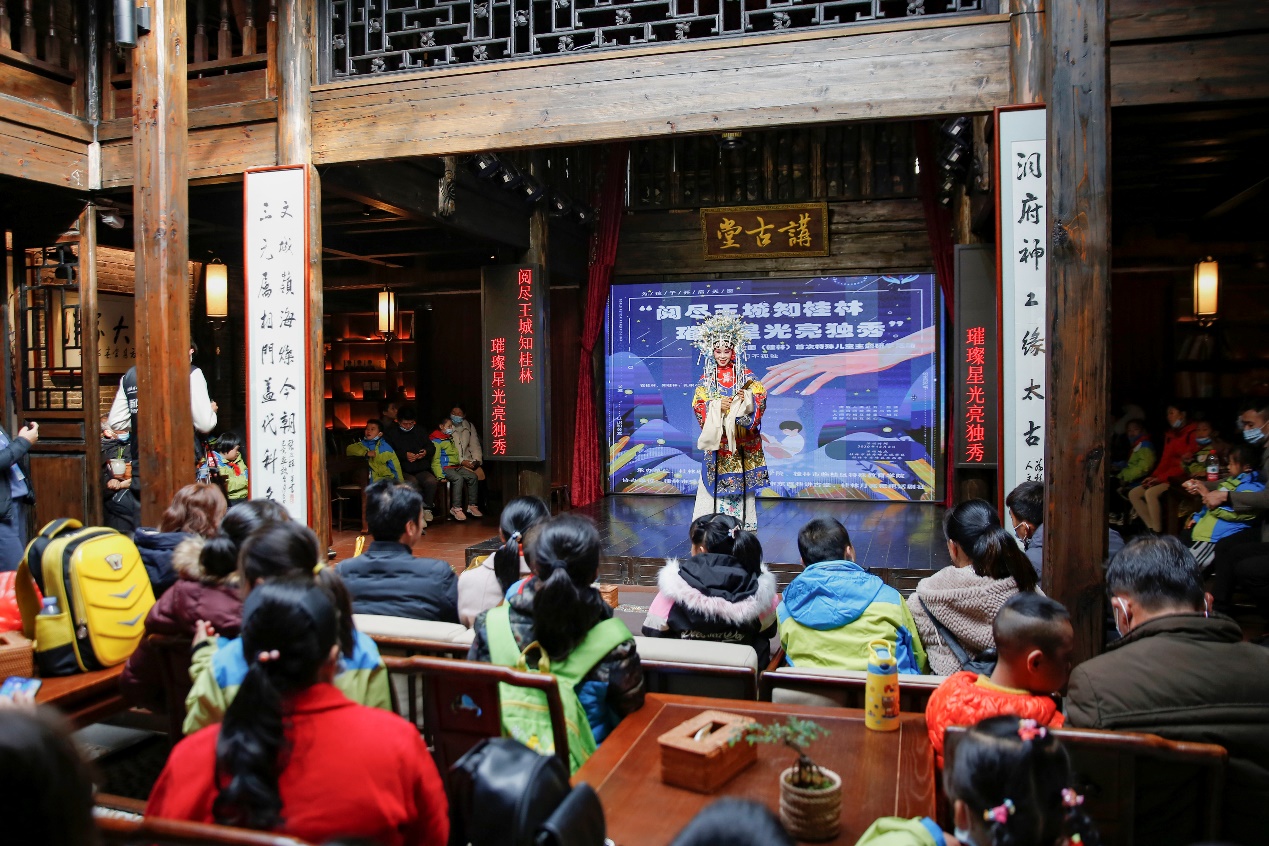 看桂林——在东西巷讲古堂观看桂戏、桂林彩调、桂剧表演。通过动态、直观的表演方式,丰富、完整的情节呈现,使特殊儿童获得沉浸式的感官体验和认知体验,从而得到艺术的熏陶,树立兼具民族性、文化性和时代性的审美观。
