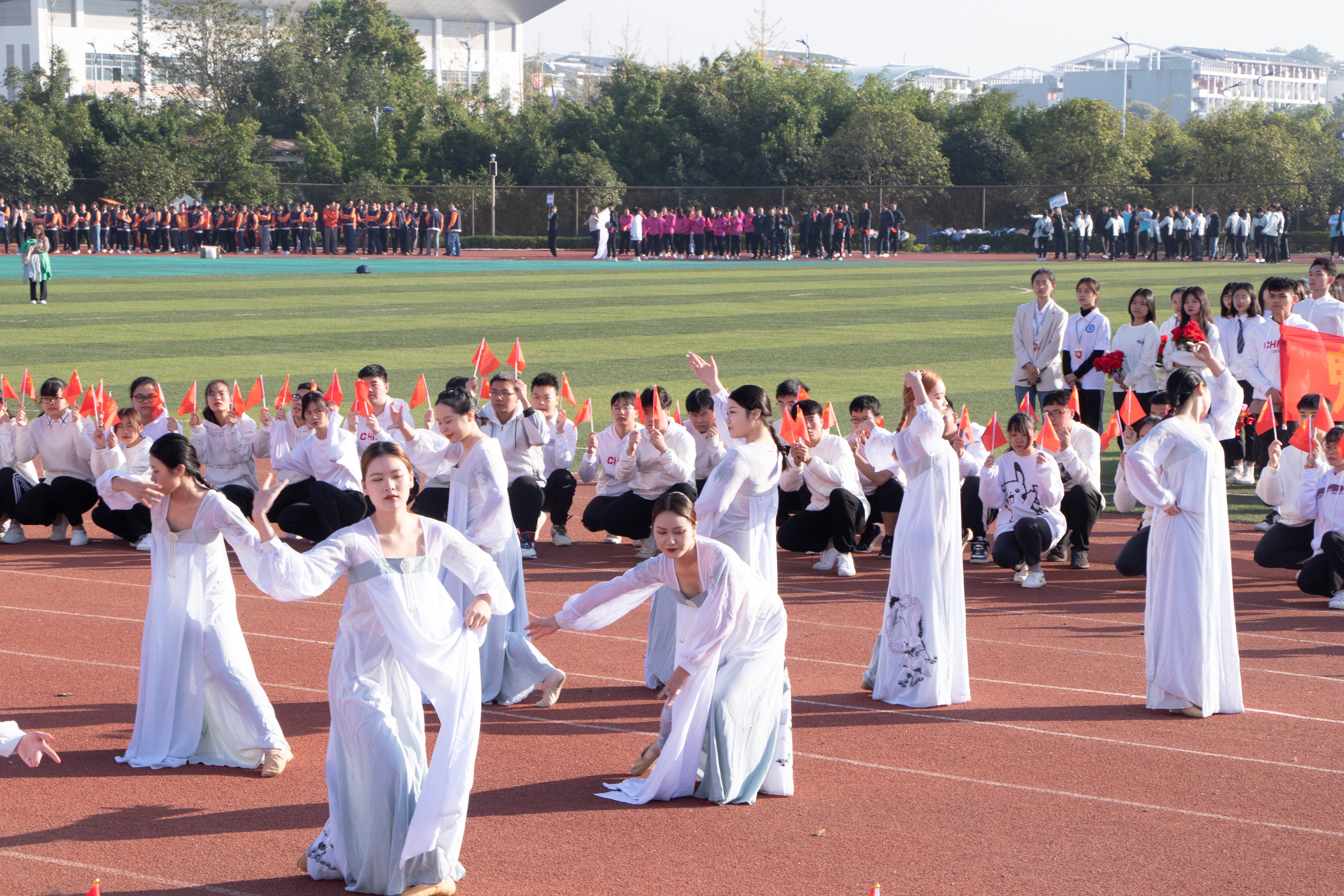 庄严的国旗护卫队步伐矫健率先入场,随后校旗队、会徽队、彩旗队和鲜花队依次出场,他们迈着整齐的步伐,喊着响亮的口号,向观众展示出青春的热情。随后,我院方块队带着热情与希望入场,在鼓点的带领下变换队形。他们用雄心壮志拉住时间,用似火热情让青春燃烧,展现出我院学子的朝气与活力。在加油欢呼声中运动会正式开始。