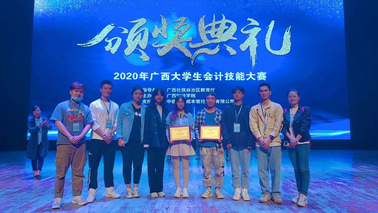 我院财管和会计专业高来宝、任建菊、覃作琦、卢太德、思佳友、邓丕伟、林维宁、周洁八位同学组成两只队伍参加比赛。队伍刻苦训练,积极求知。经过紧张的比拼与角逐,两只参赛队伍均突破重围,取得了优秀的成绩,获得广西区三等奖。