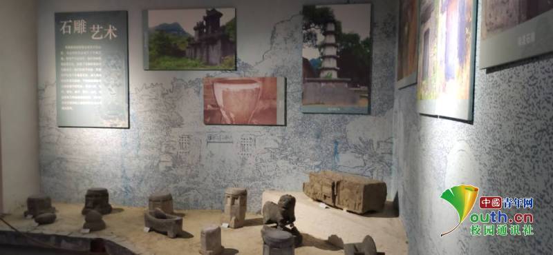 博物馆二楼为“普通陈列”,分别展示民族建筑、碑刻、匾额、石雕艺术、生产生活用具、饮食文化、纺织染工艺、民间礼俗、毛南山乡新貌等实物和图文内容。毛南族的能工巧匠很多,他们不仅善于木雕艺术,而且石雕的技艺也很高超。一方水土养一方人,生活在群山怀抱之中的毛南族人与石头结下了不解之缘,这也练就了毛南人雕塑石头的手艺。在博物馆里实践团队成员们看到了多年以前毛南人的石雕艺术品。在那个不发达的年代,毛南人没有什么精巧的工具,只用那简单的锉刀和锤子,一点一点的凿,刻出花式,制作出家庭用具和石雕艺术品。让我感受到了,每一个石雕都承载了毛南人对美好生活的向往。