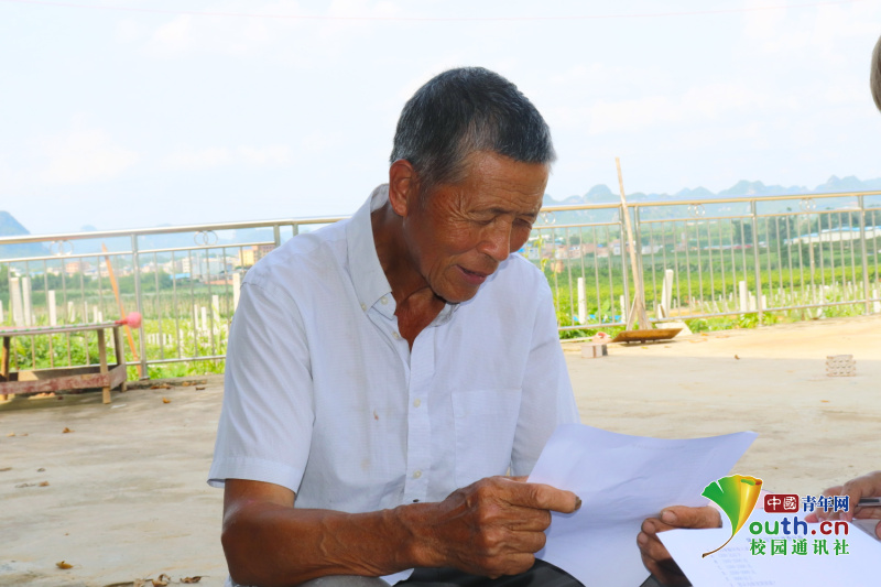 实践队队员们到达定坤村村委时向村主任简单的介绍了这次实践队的暑期三下乡社会实践活动。随后,在村主任的带领下,队员们开始采访了第一个贫困户家庭。刚到他家时,村主任向他表明了本次实践队的调查工作,贫困户非常的积极和热情。他告诉队员们,在政府的帮扶下,他的养殖规模不断扩大并带着实践队去看他所养殖的猪、牛、羊等牲畜。其中采访一个贫困户向实践队员们讲述了经过扶贫工作后,自己家从以前没有厕所,没有灯的环境变成现在家里既有了厕所、热水器又有了电视机的巨大改变。村里还给老年人提供了工作岗位,帮他们减轻生活的负担。在采访的过程中,实践队深刻地认识到脱贫攻坚给贫困户带来的巨大变化,通过他们的讲述,感受到了政府基层干部对他们的关心,还有对国家扶贫政策的肯定。