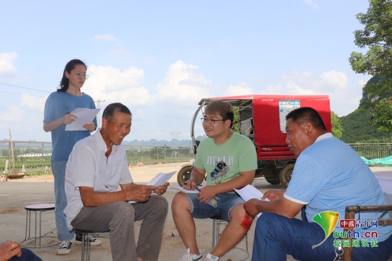 挥洒热血青春,直击扶贫一线。桂林理工大学博文管理学院商学院实践一分队抵达村委、陇元才屯旧址调研结束后,于8月13日上午,实践一分队抵达广西壮族自治区南宁市丁当镇定坤村陇元才屯新址,参观扶贫车间、经过改造后的陇元才新屯,调研前后差别并对搬迁居民进行问卷调查。