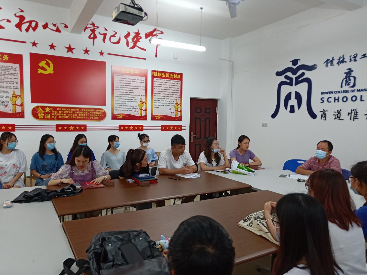 6月29日,商学院学生第三党支部在1410会议室召开2020届毕业生党员经验交流座谈会。学生第三党支部书记、毕业生党员代表、非毕业班全体党员以及入党积极分子代表共计30余人参加了座谈会,会议由支部书记同志主持。