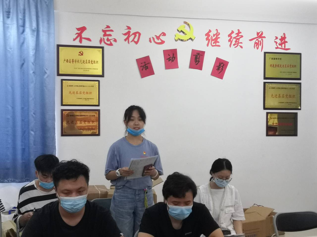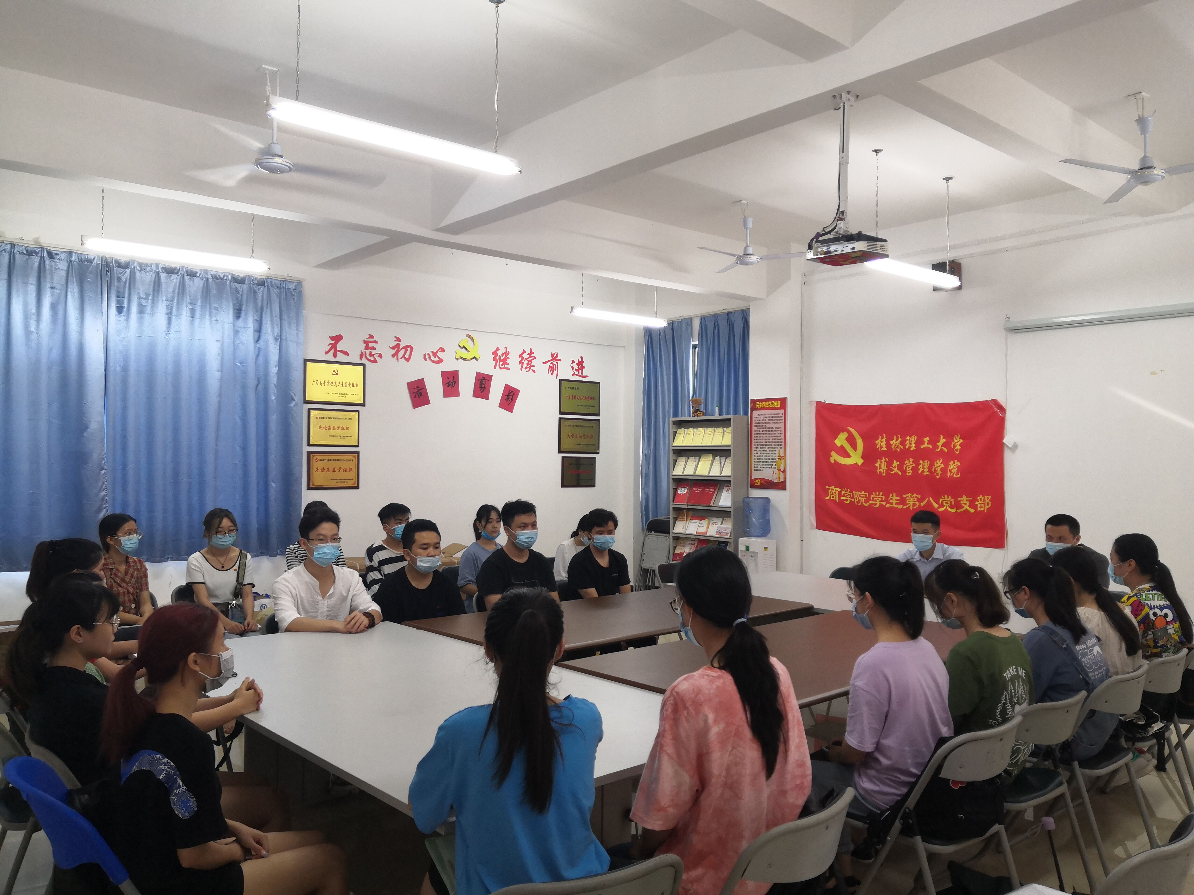 7月3日,商学院学生第八党支部在1410教室开展了“迎党的生日、讲战疫故事、悟初心使命”组织生活会与构筑一道“红色防火墙”为主题的支部会议。会议由支部书记黄榕成同志主持,除1名党员因事请假外,其余党员全部参加了会议。